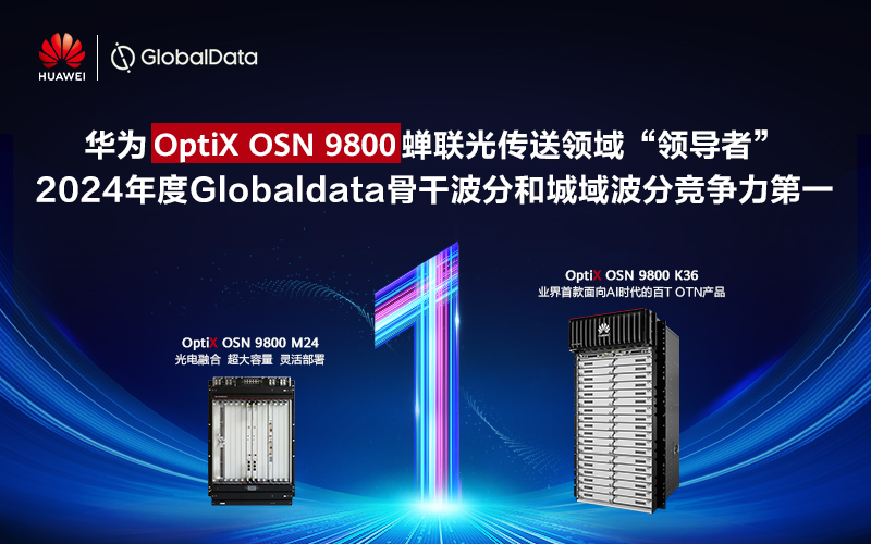 华为OptiX OSN 9800蝉联GlobalData骨干和城域波分领域竞争力“领导者”