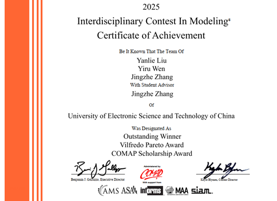 E和F题的美国数学及其应用联合会学术奖COMAP Scholarship Award奖