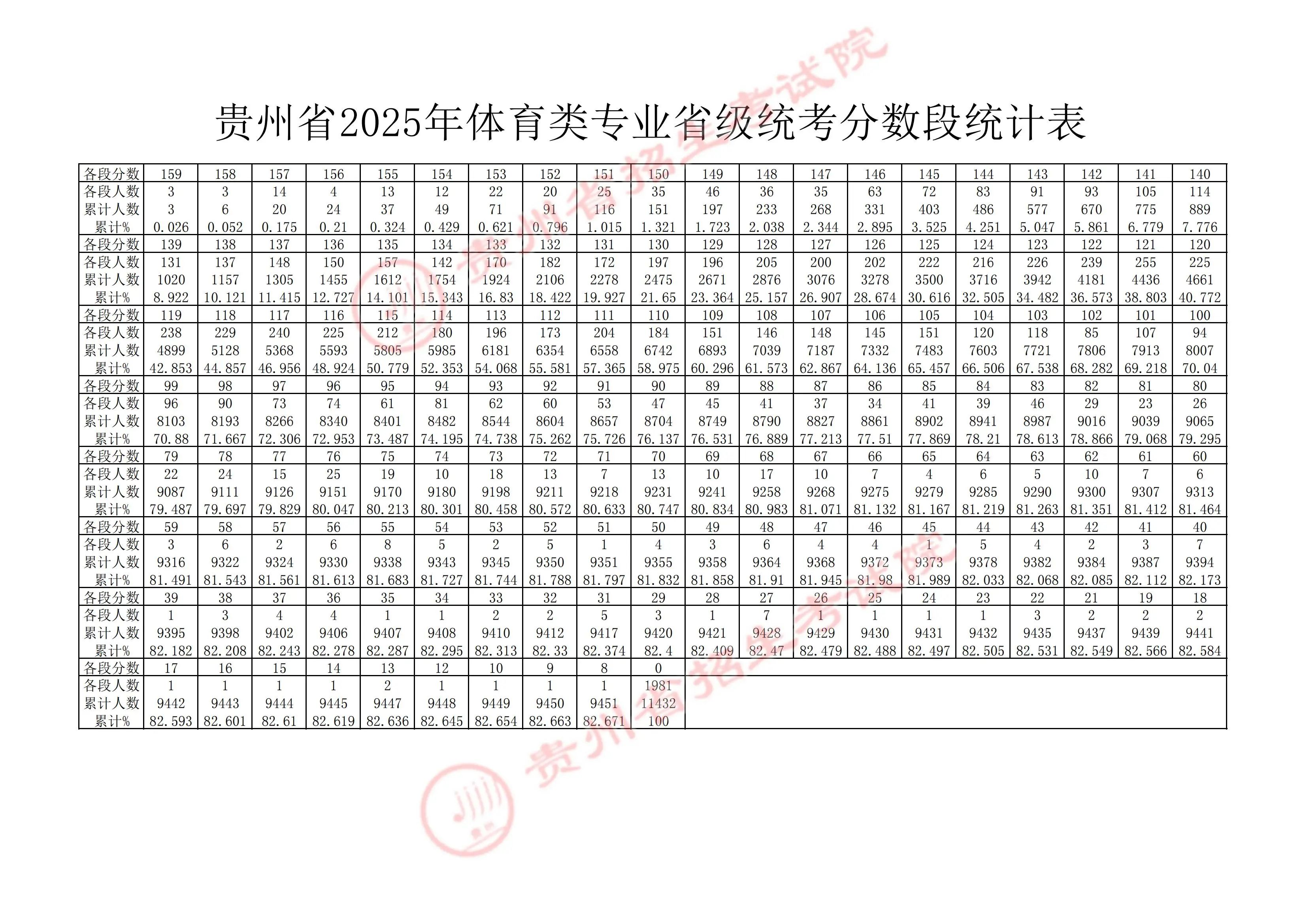 根据《省教育厅关于做好贵州省2025年普通高等学校艺术、体育类专业考试招生工作的通知》(黔教发〔2024〕30号)精神,贵州省2025年普通高校招生体育类专业省级统考录取控制分数线已划定。