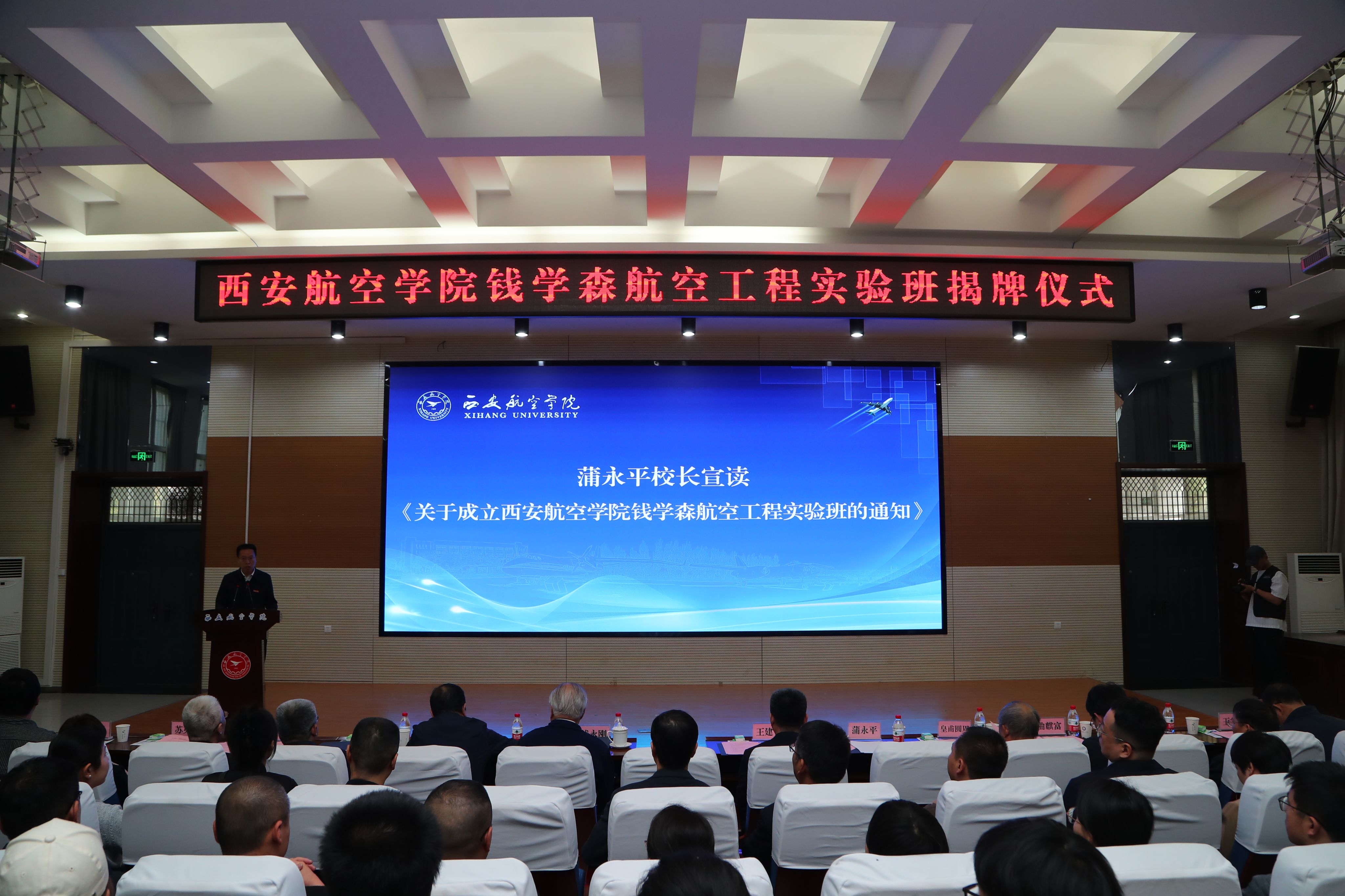 会上,钱永刚教授宣读了《关于西安航空学院钱学森航空工程实验班冠名申请的批复》。蒲永平校长宣读了《关于成立“钱学森航空工程实验班”的通知》。钱永刚教授与蒲永平校长共同为“钱学森航空工程实验班”揭牌。祁玉龙书记为钱永刚教授颁发西安航空学院钱学森航空工程实验班名誉班主任聘书。首期钱学森航空工程实验班学生代表王治方同学发言。