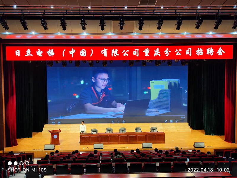为助力毕业生更高质量更加充分就业,2022年4月18日,学校在9号楼多功能报告厅举办了2022届毕业生第一场校园招聘会。本次专场招聘会邀请了日立电梯(中国)有限公司、上海三菱电梯有限公司等世界著名电梯品牌公司重庆分公司到校宣讲招聘,涵盖电梯安装、维保、销售等多个岗位。