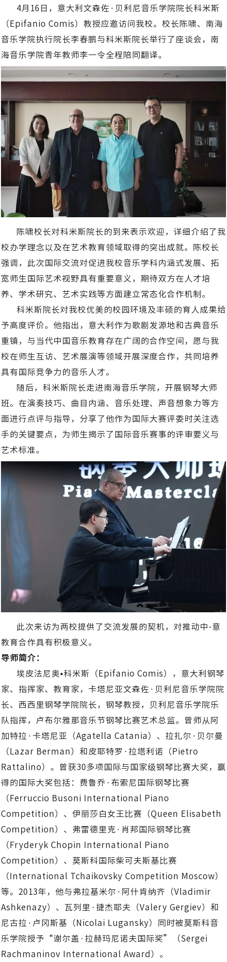 意大利文森佐·贝利尼音乐学院院长埃皮法尼奥•科米斯访问我校