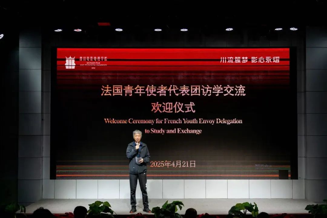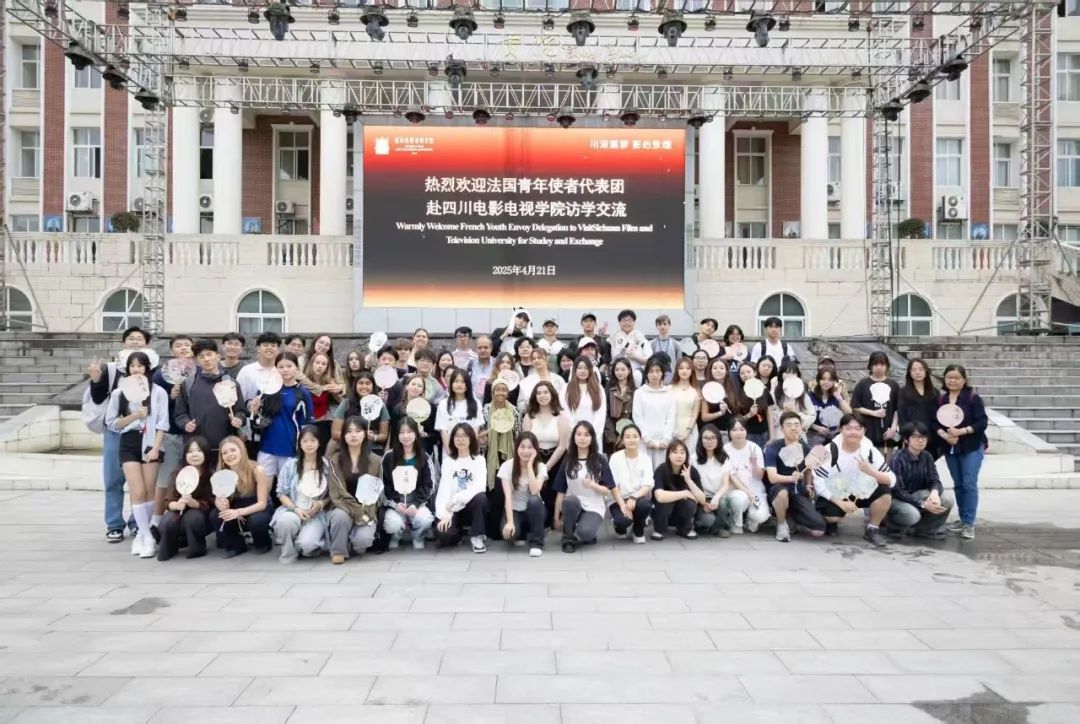 2025年4月21日,法国巴黎博苏埃高中校长和2名教师、40名高中生莅临我院,进行了一次深入考察访问,开启了一场光影与艺术的深入对话。四川电影电视学院副院长颜杰教授、设计与美术学院副院长董庆帅副教授、国际交流中心综合办主任卿倩副教授等出席欢迎仪式。 随后,带领法国青年访学团参观了四川影视文创城、图书馆、并对法国青年访学团的到来表示热烈欢迎。系列活动中,40余位法国青年访学团师生还和20余名设美学子一起体验了中国非遗手工漆扇的制作,中法学生欢聚一堂共唱《成都》等歌曲,气氛热烈,收获良多。