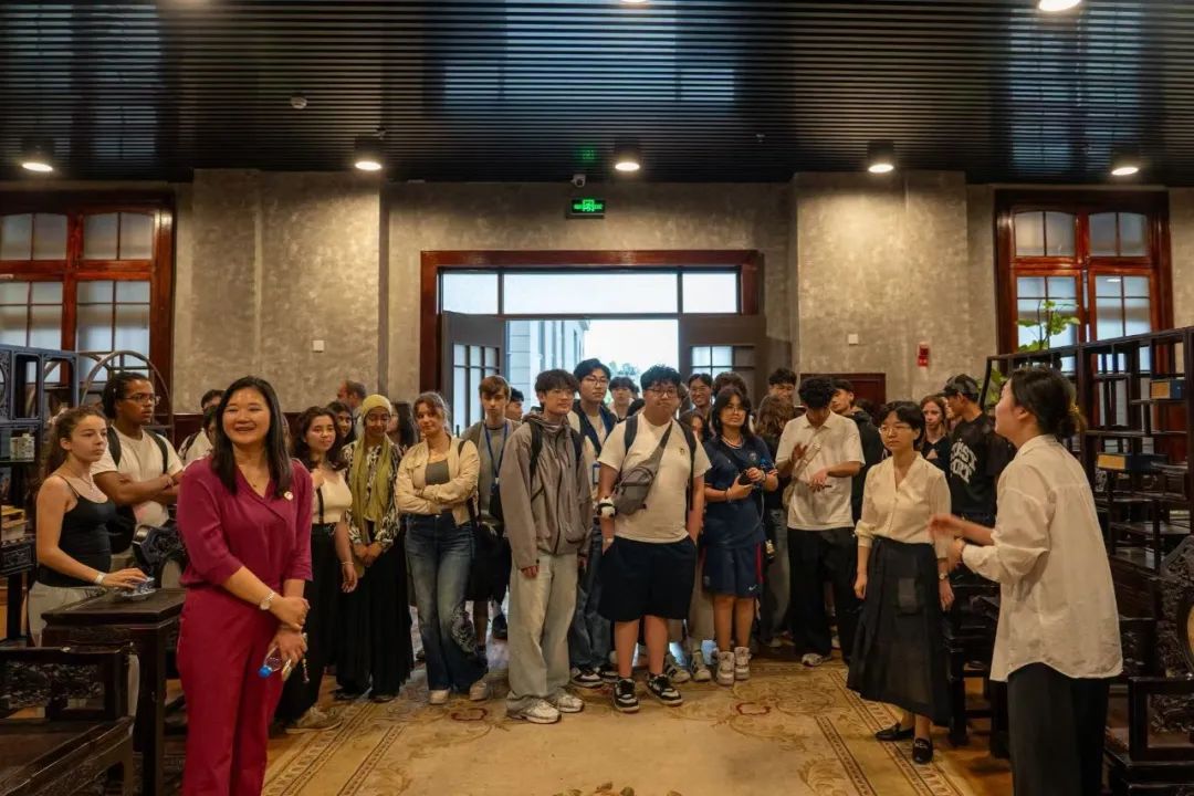 法国青年访学团一行首先观看了四川影视文创城,该地道具服装中心、及图书馆于一体,全方位呈现了影视艺术的丰富内涵。