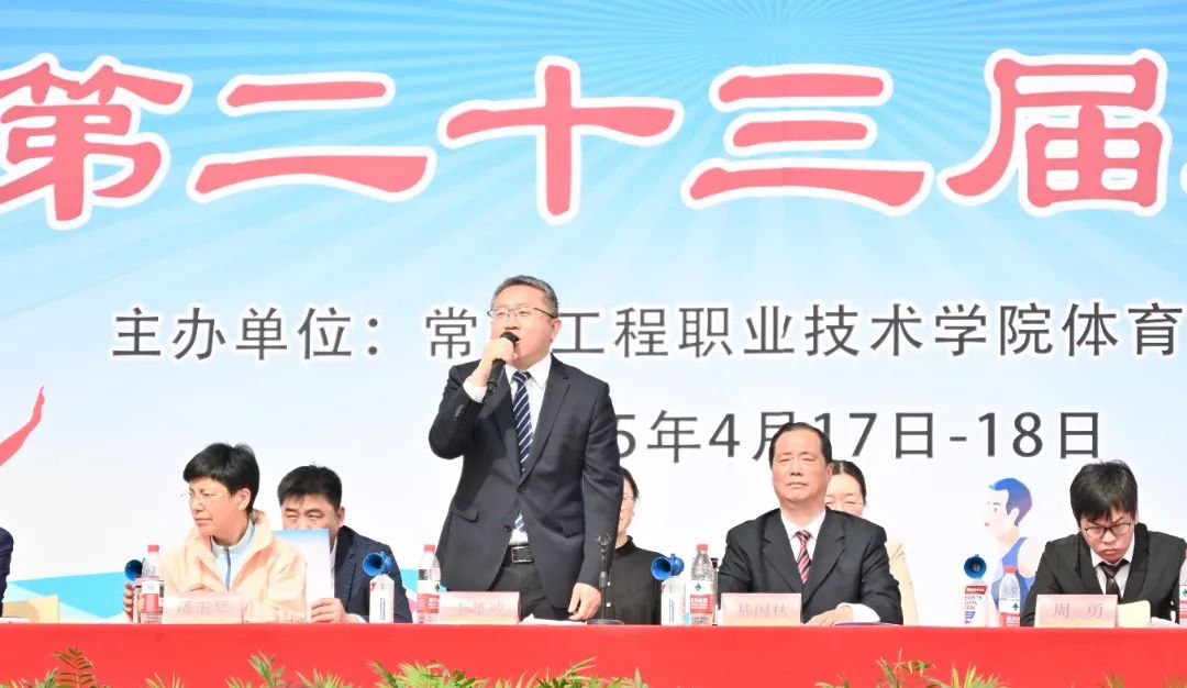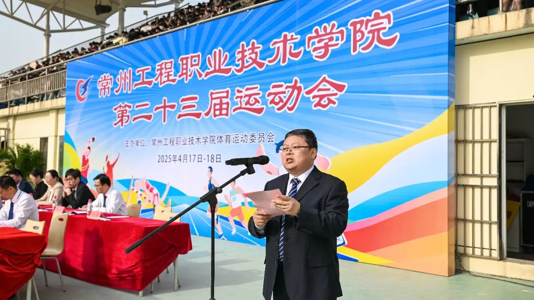 在春和景明、芳菲盛开的美好时节,常州工程职业技术学院第二十三届运动会隆重举行。校领导、党委委员以及相关职能部门及二级学院负责人出席运动会开幕式,开幕式由校党委委员、副校长周勇主持。