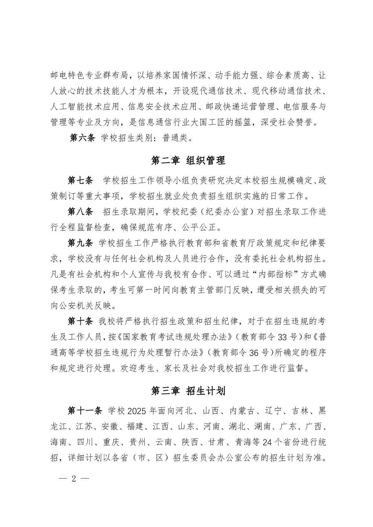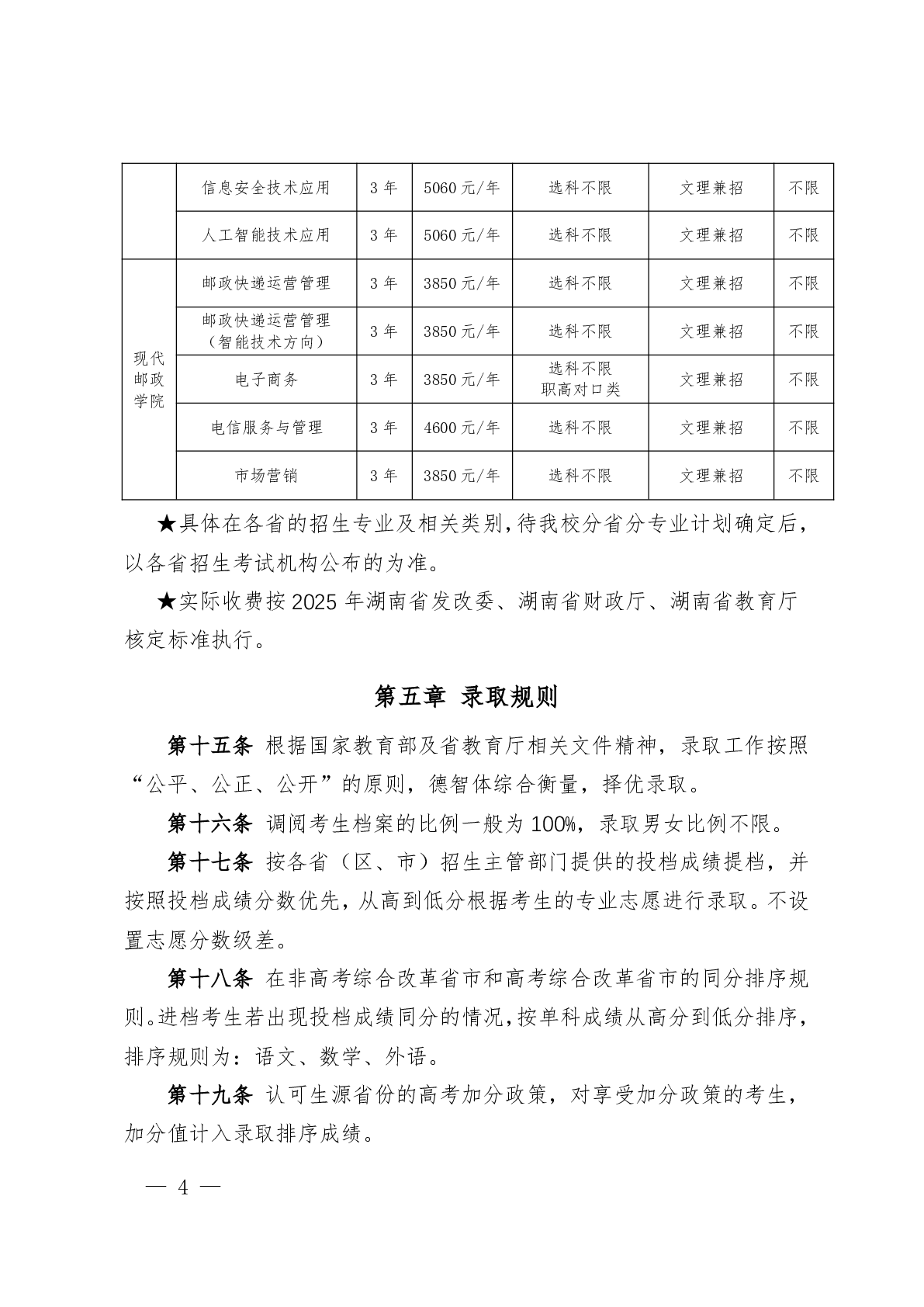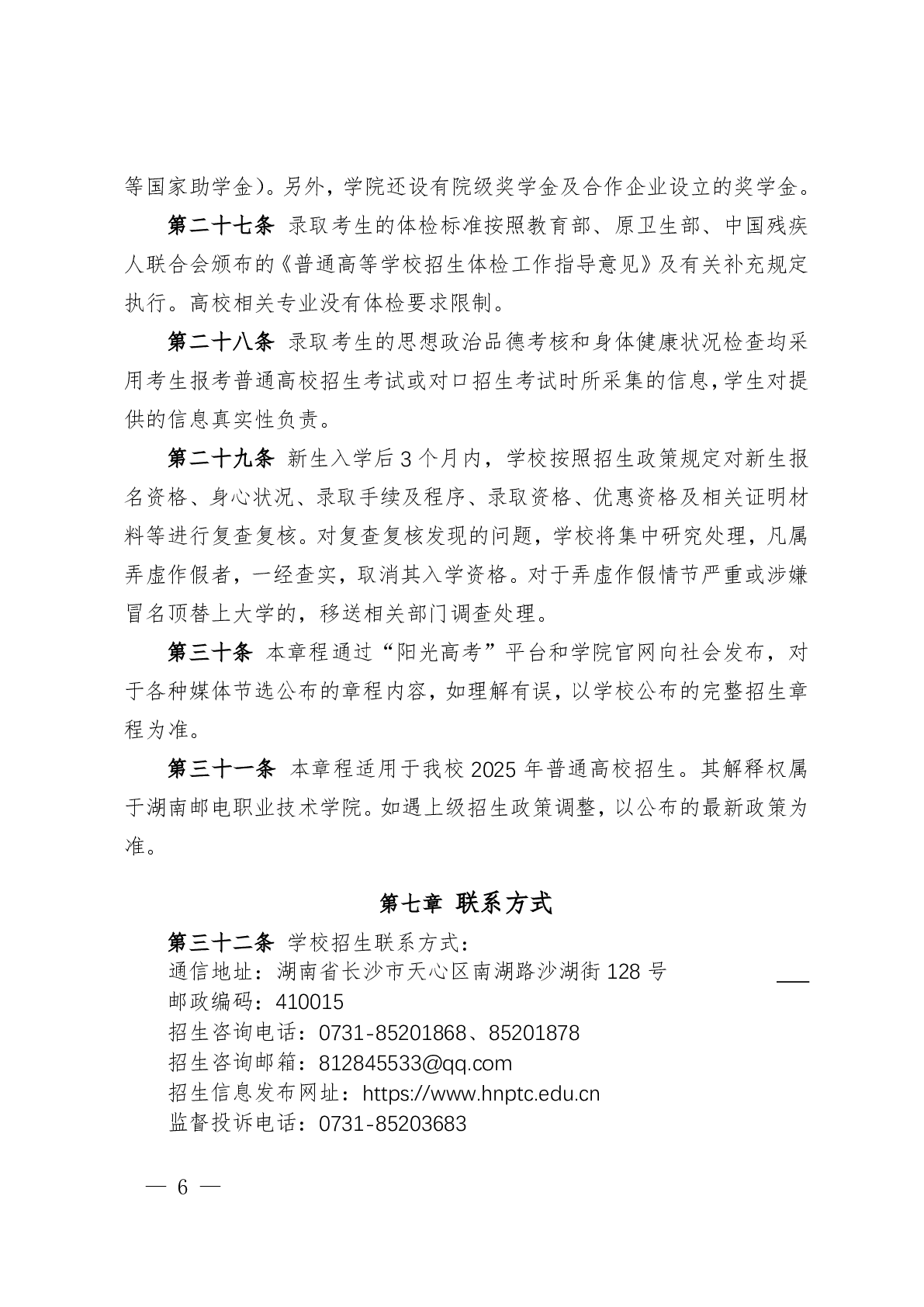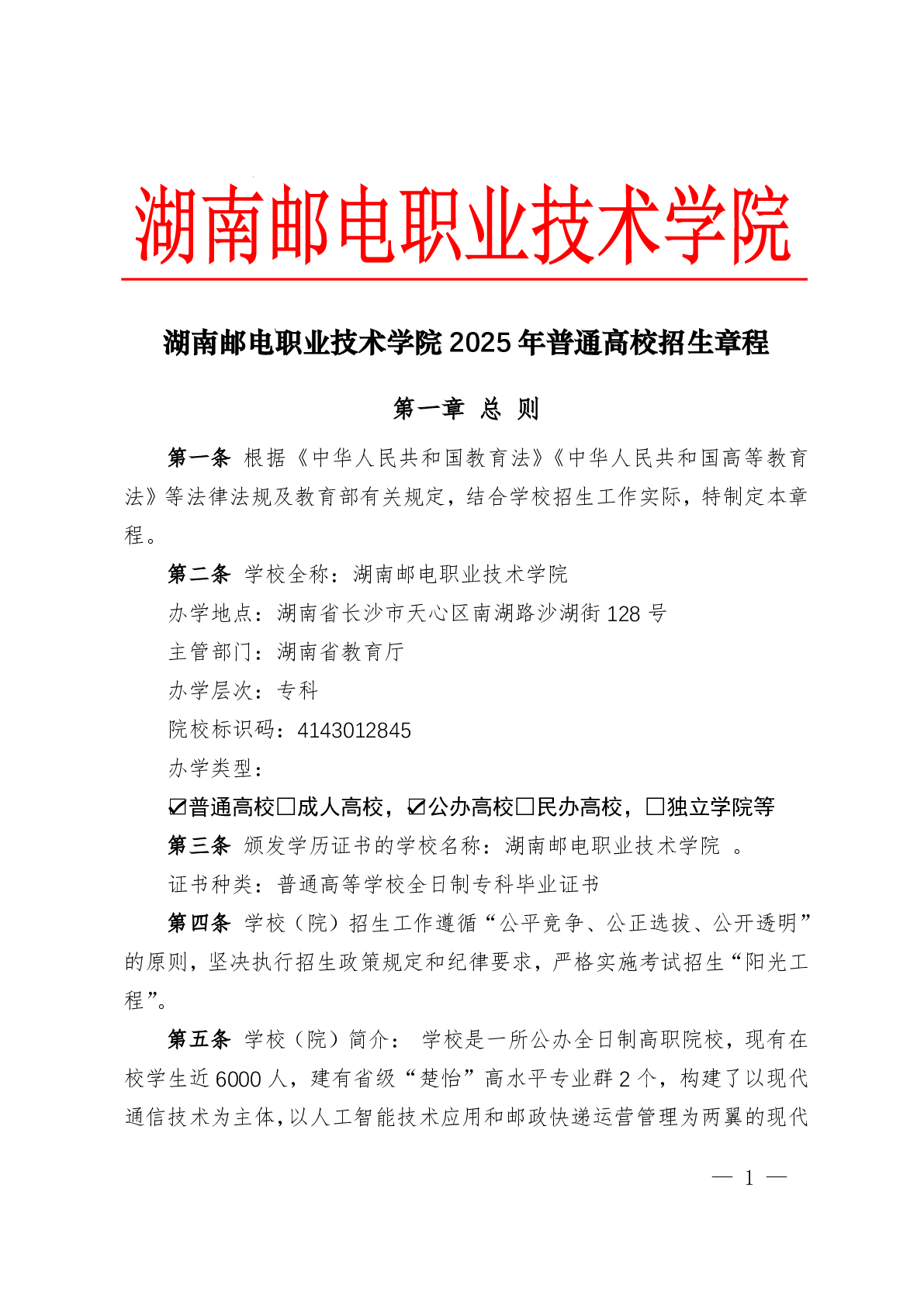 湖南邮电职业技术学院2025年普高招生章程