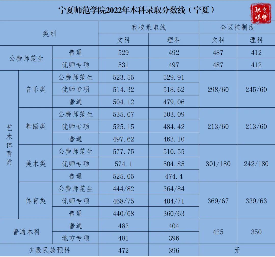 宁夏师范大学2021年-2023年本科录取分数线(宁夏)