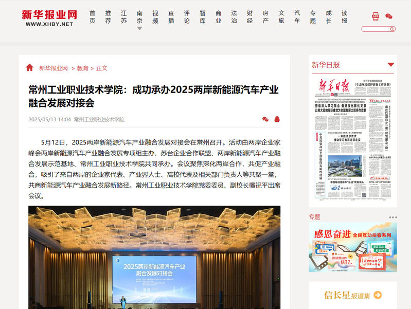 新华报业网:常州工业职业技术学院:成功承办2025两岸新能源汽车产业融合发展对接会