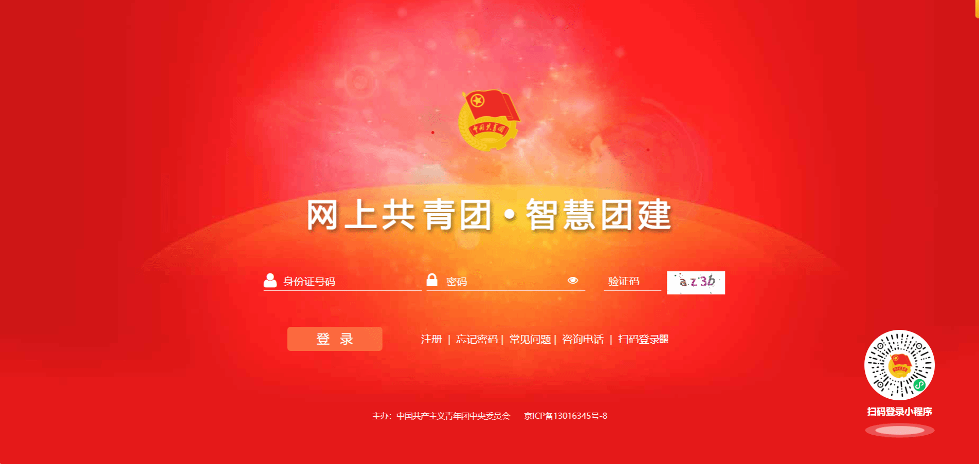 【注】①若显示身份证或密码错误,请联系原就读学校团组织管理员确定本人是否已录入“智慧团建”系统。若确认在系统内,可点击[忘记密码]进行修改,并联系本级或直属上级团支部管理员生成[密码重置码];②智慧团建系统只能在电脑PC端登陆。