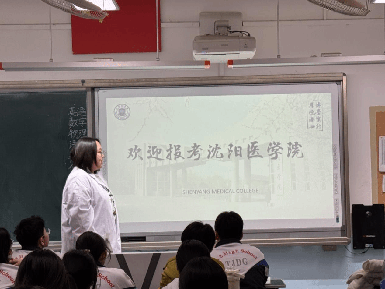 宣讲过程:在母校高中的安排下,用精心准备的PPT和幽默风趣的演讲稿展示了我的大学——沈阳医学院的校园风光、专业设置、师资力量等内容。然后分享了在沈阳医学院的学习生活经历,包括丰富多彩的社团活动、紧张充实的课程学习等。最后,设置了互动答疑环节,同学们积极提问,我耐心解答,现场气氛热烈。