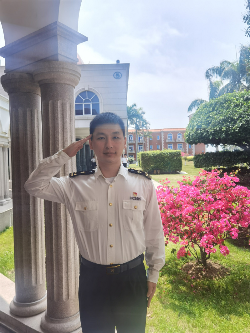 黄兴文:2010年,我光荣成为江苏科技大学国防生队伍的一员,经过四年学习、训练,我的海军生涯扬帆起航。在部队的那些年,我见证了部队装备从“小腊子”猎潜艇到坚船利舰的发展,有幸参加了第一艘航母的学习体验,深感大国重器的强大,坚定了杀敌必胜的信念和走向深蓝的信心。如今,从海军白到海关白,变的是身份,不变的是人民海军精神永远激励着我。从守海疆到守国门,变的是职责,不变的是为国为民奉献的决心。