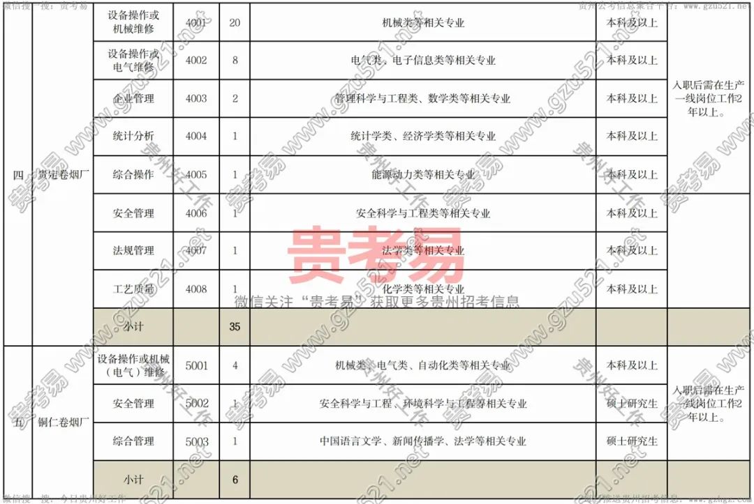 5.具有正常履行岗位职责的身体条件和心理素质,报考卷烟厂职位应无影响生产设备安全操作的身体功能缺失,能胜任夜班工作和长时间站立工作;