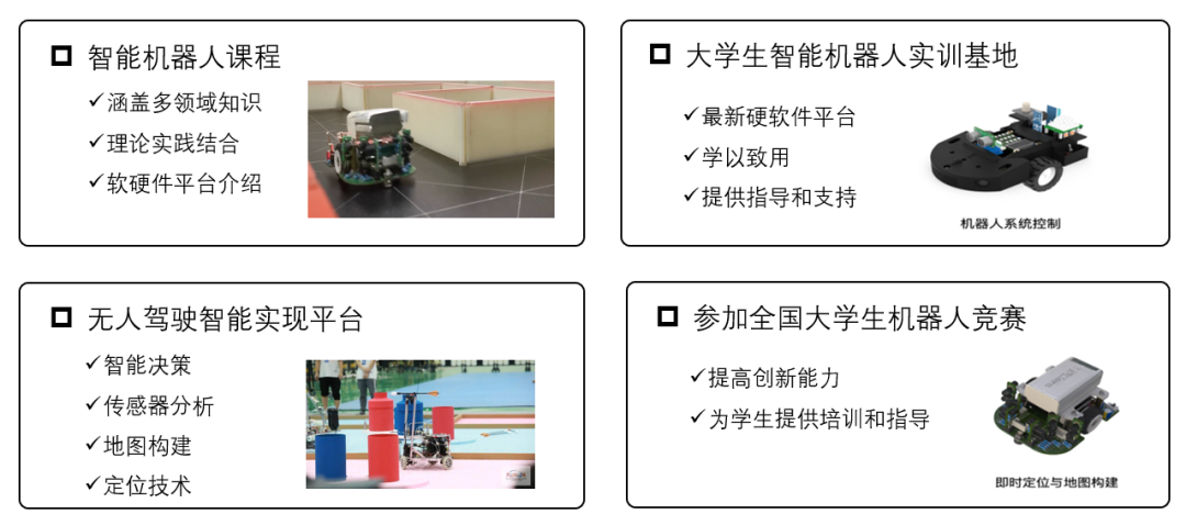 在校内实验实训平台开展工程训练、人工智能主题实践、智能机器人主题实践、创新工程实践等;与数十家合作企业建立校外实践教学基地,开展认识实习、社会实践、专业实习以及人工智能岗位实习等。