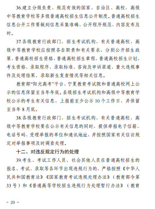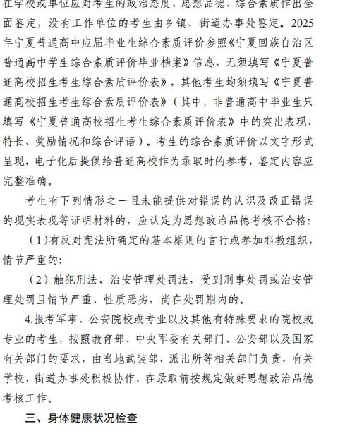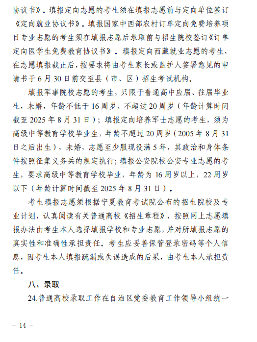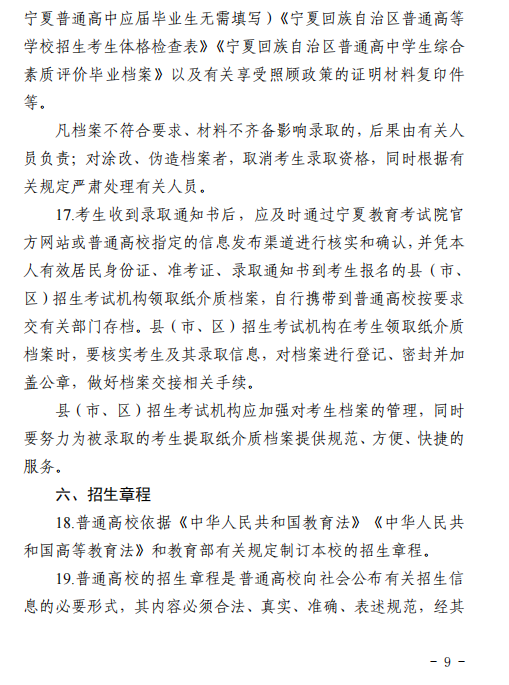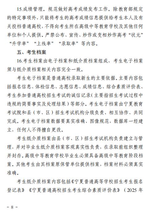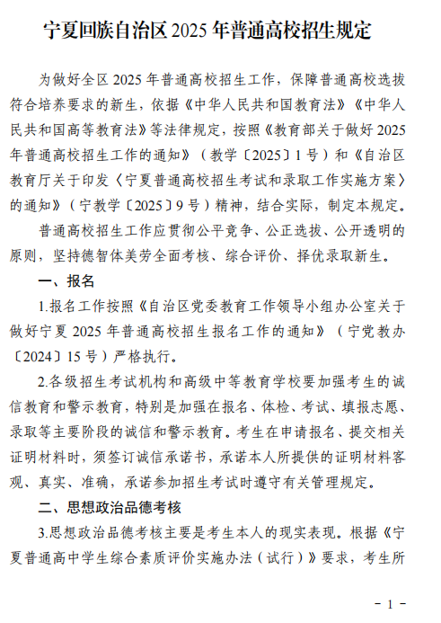 宁夏回族自治区2025年普通高校招生规定(点击查看)