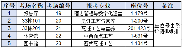 ①烹饪工艺与营养专业:33 栋101(正门人脸识别)、 33栋201(侧门人脸识别)