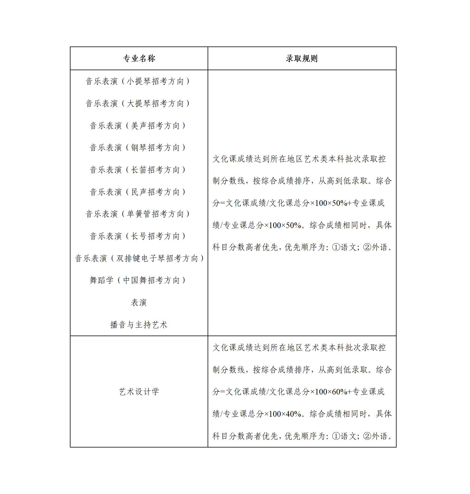 ①平行志愿投档批次:对符合考生所在地区投档条件,且符合我校录取规则中文化课成绩要求(详见下表中“录取规则”)的考生,按招生所在地平行批次录取规则执行。