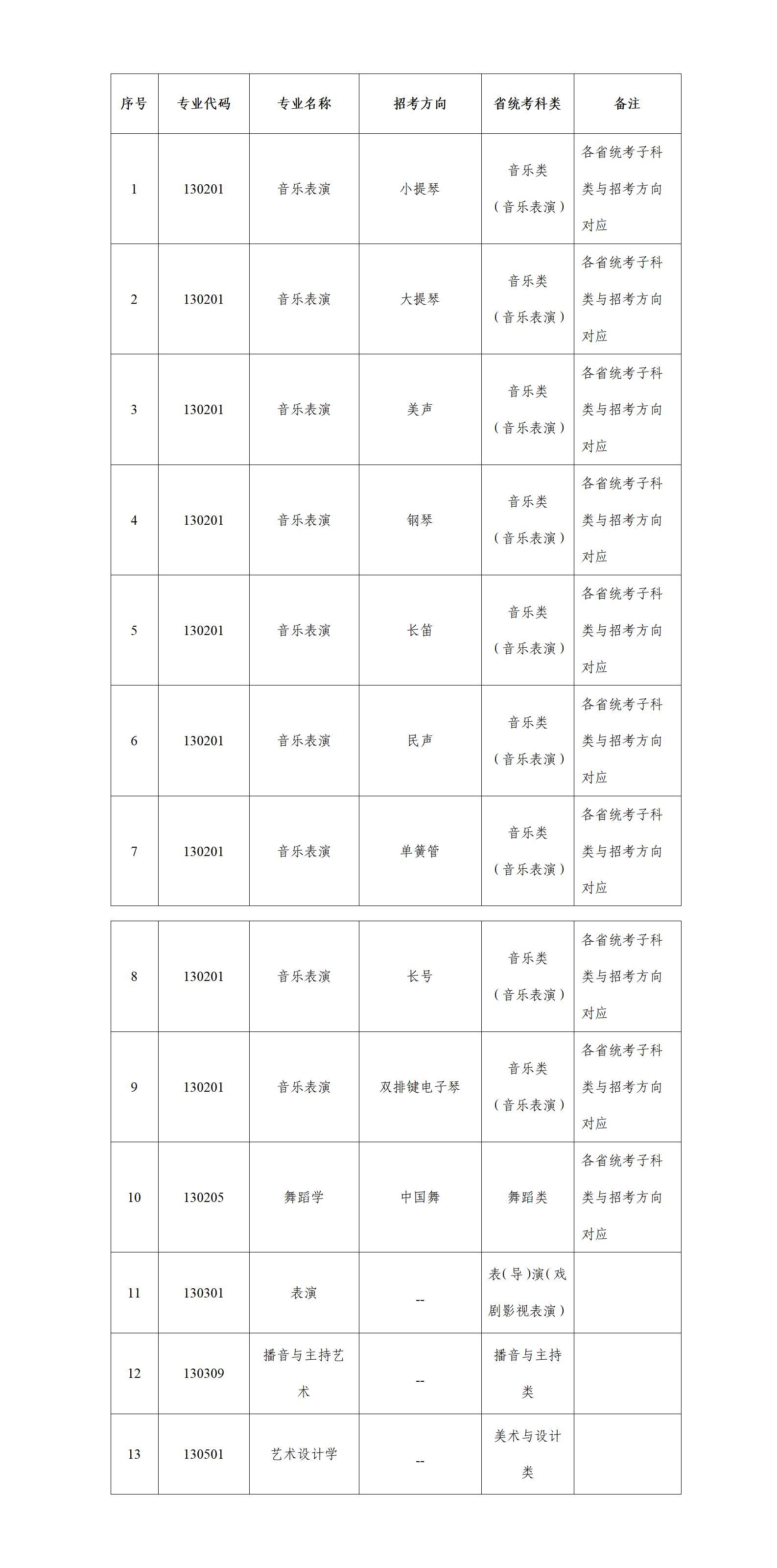 (2)在艺术类批次招生的艺术类专业