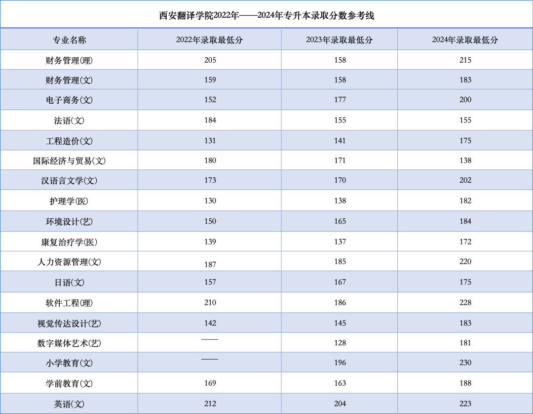 西安翻译学院2022年——2024年专升本录取分数线参考