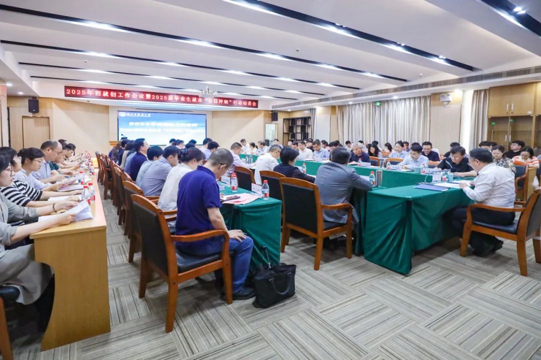 陈忠充分肯定了2024年招生、就业和创业工作所取得的成绩,并就做好2025年有关工作提出四点要求。一是提高认识,全局谋划各项工作。要立足创建高水平大学的全局视野,以高度的政治自觉和使命担当,全力做好2025年招生、就业和创业工作。二是综合研判,科学锚定工作路径。要准确把握当前做好招生、就业、创业工作的形势和条件,深入分析研判、精准发力、综合施策,打好2025年招生工作的攻坚战、就业工作的冲刺战和创新创业工作的突破战。三是加强谋划,扎实推进2025年招生工作提质增效。要加强统筹谋划,从学校层面整体谋划招生工作;加强招培就联动,进一步优化学科布局和专业结构;科学统筹招生专业类型和计划分配,创新招生宣传,显著提升招生质量。四是全力以赴,促进2025届毕业生高质量充分就业。要以更强力度精准拓宽就业渠道,多途径扩大岗位供给;以更实举措全过程护航就业育人,引导毕业生牢固树立正确就业观,提升就业竞争力。