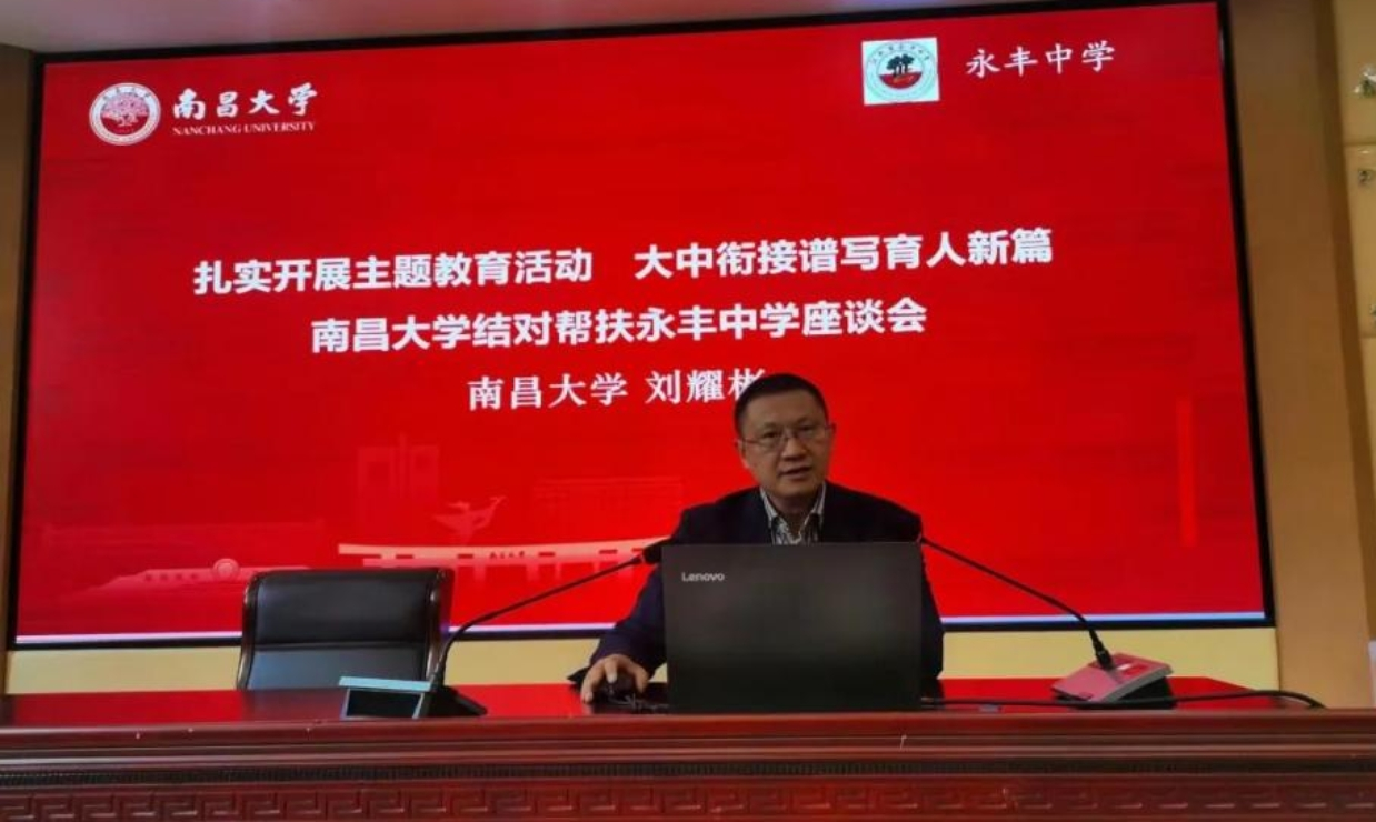 5月12日,在支部党员刘耀彬副校长的带领下,南昌大学招就处联合科技处、未来技术学院、第二临床医学院等单位赴结对帮扶中学——永丰中学开展主题教育活动,召开结对帮扶主题教育工作座谈会,两校围绕大中有效衔接和思政一体化建设、培养具有江西底色的时代新人等方面开展研讨,并看望南昌大学三位中学任教毕业生。