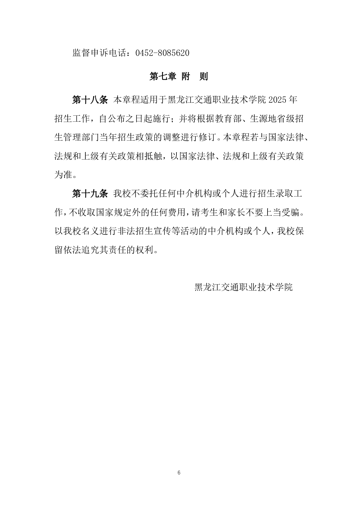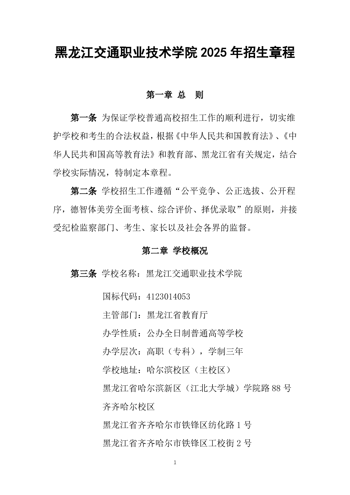 黑龙江交通职业技术学院2025年招生章程