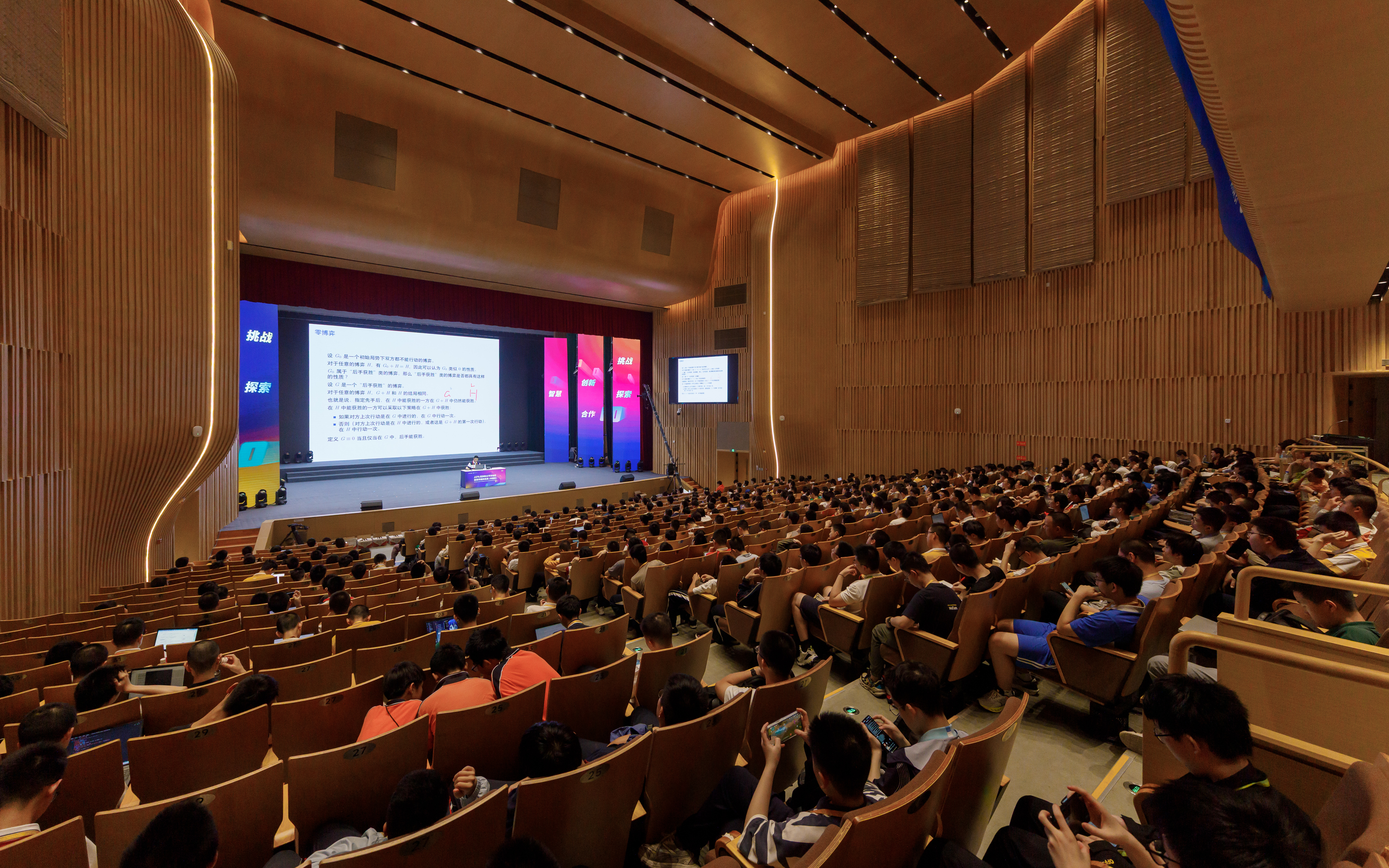除了紧张的测试环节,本次活动还精心搭建了学习与交流的广阔平台。活动期间,五场干货满满的授课与交流活动接连开展。NOI2022金牌选手罗思远以及即将代表中国出征IOI2025的国家队选手刘恒熙、刘海峰、陈昕阳和范斯喆担任讲者,他们结合自身丰富的参赛经验和专业知识,为选手们带来了一场场精彩绝伦的报告。