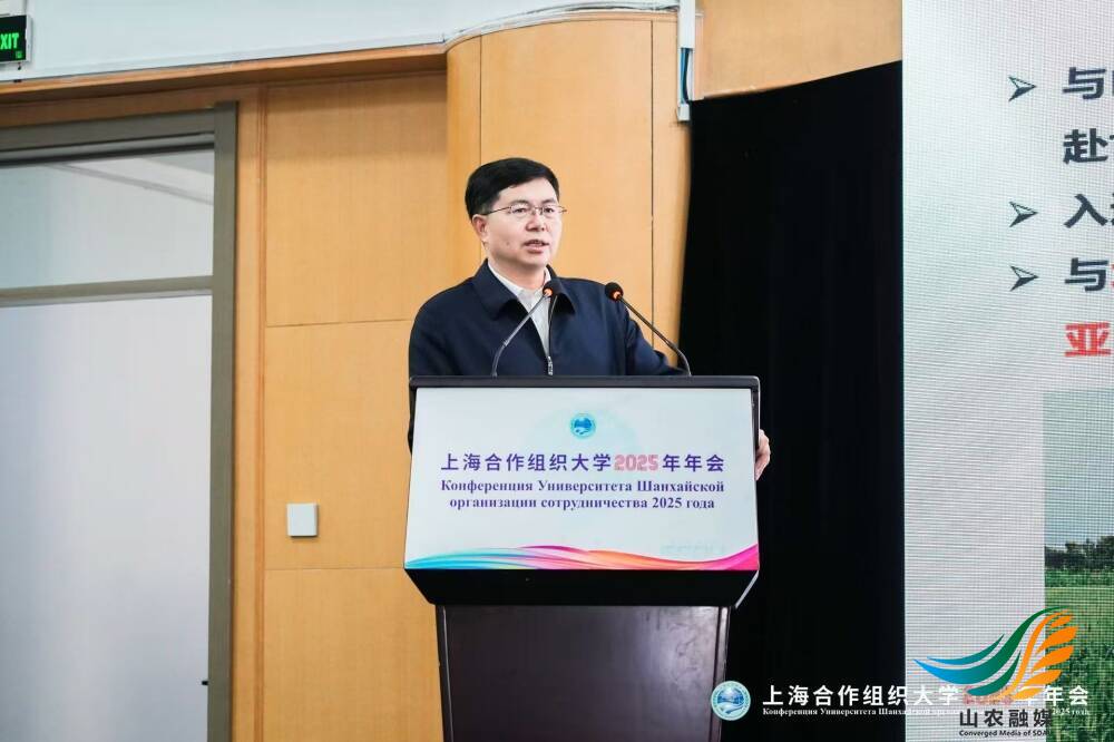 山农融媒5月20日讯近日,上海合作组织大学2025年年会在新疆乌鲁木齐举行,来自中国、俄罗斯、哈萨克斯坦、吉尔吉斯斯坦、塔吉克斯坦5个国家的教育部部长、副部长、校长以及教育界同仁出席会议。学校党委副书记、校长冷畅俭应邀参加会议,并代表学校作题为《强化科产教融合,促进更高水平国际合作》的主旨发言。