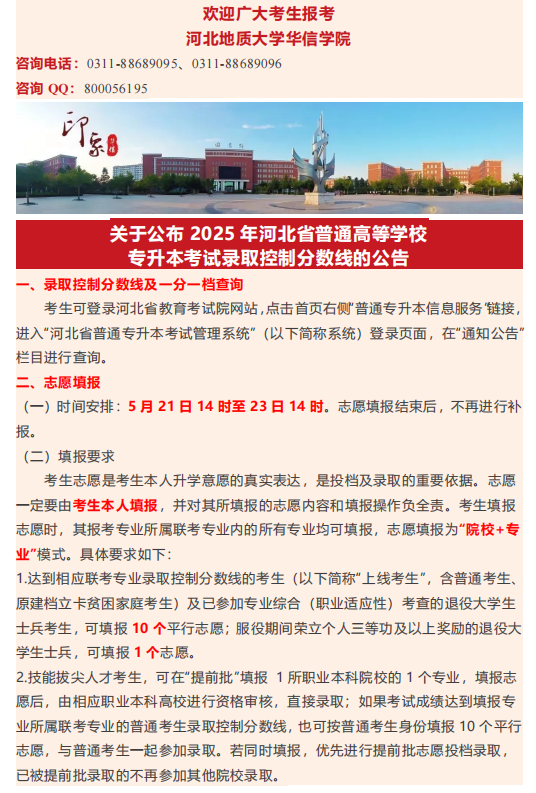 河北地质大学华信学院 2025 年专升本志愿填报指南