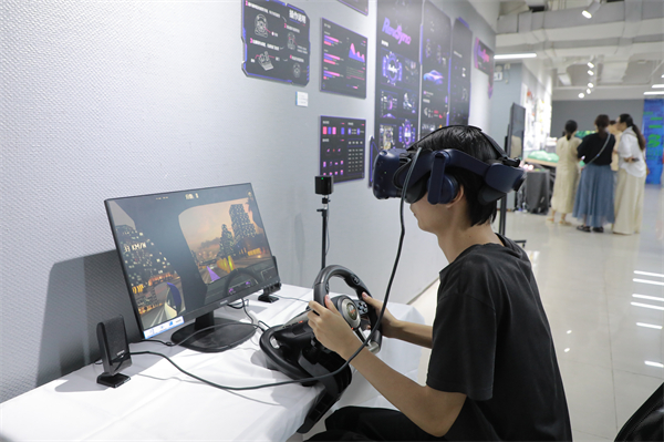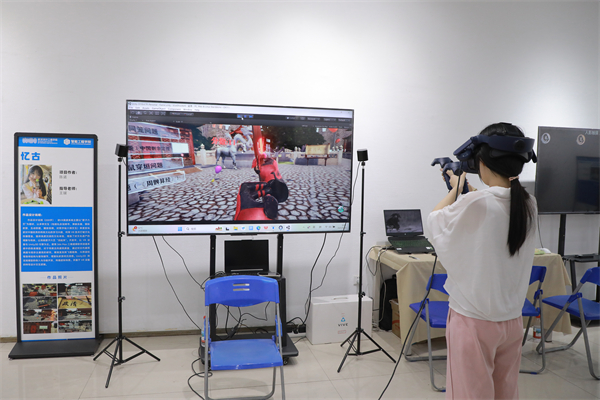 “文化传承要契合年轻人喜好。”智能工程学院游戏作品《寻找端午节》凭借强大交互功能,让玩家在完成游戏任务中增强文化认同与自豪。《忆古》则借助VR技术,将礼仪演示、乐器弹奏、射箭体验、互动答题、古风视频、字帖对照等“君子六艺”内容鲜活呈现。设计者用建模软件精准复刻古建筑并搭建虚拟场景,以强化沉浸感点燃玩家对中华优秀传统文化的学习热情。