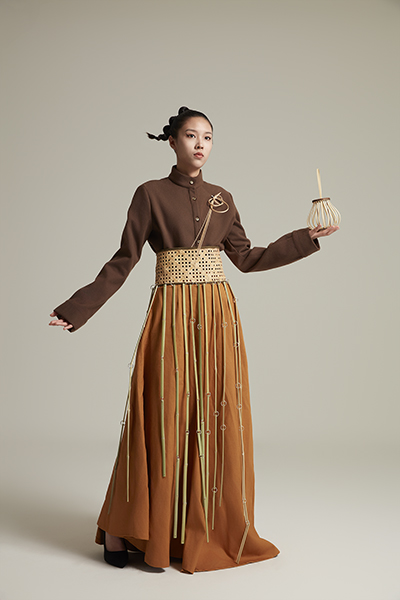 时装《筠篾》从传统竹编工艺中汲取灵感,尽显质朴自然韵味。学院供图