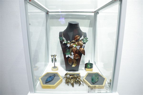 首饰《漆·熠》以金点错落散布于漆叶之上替代满钻镶嵌,展现传统工艺独特魅力。苏黄可昕 摄