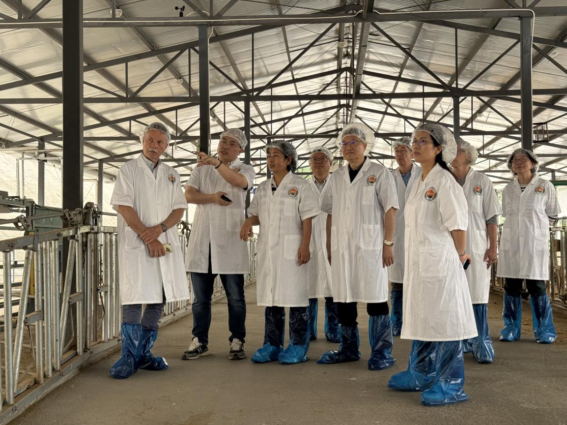 德方教授来到位于四川乐至县的四川省畜科院肉牛现代种业创新科研基地进行参观交流。邓小东场长全面讲解了肉牛基地建设的智能化进程以及饲喂效果。Büscher教授饶有兴趣地询问了肉牛智能耳标的使用原理以及数据获得的途径,并表示中国牛产业智能化发展速度快,肉牛养殖饲养条件逐年变好,动物福利得到了大大提升。孙宇瑞教授关注到了肉牛裹包青贮饲料的制作过程,并表示青贮饲料的发酵过程测量智能化程度还不够,判定青贮发酵的参数较多,需要用数学模型构建。赖松家教授表示中国牛产业智能化应用模块深入饲养各环节,如牛个体识别、精准饲喂系统、发情鉴定、圈舍清洁、疾病诊断等,随着数据量的增加,精准化程度也在不断提高,有效提高了饲养效率和动物福利饲养。
