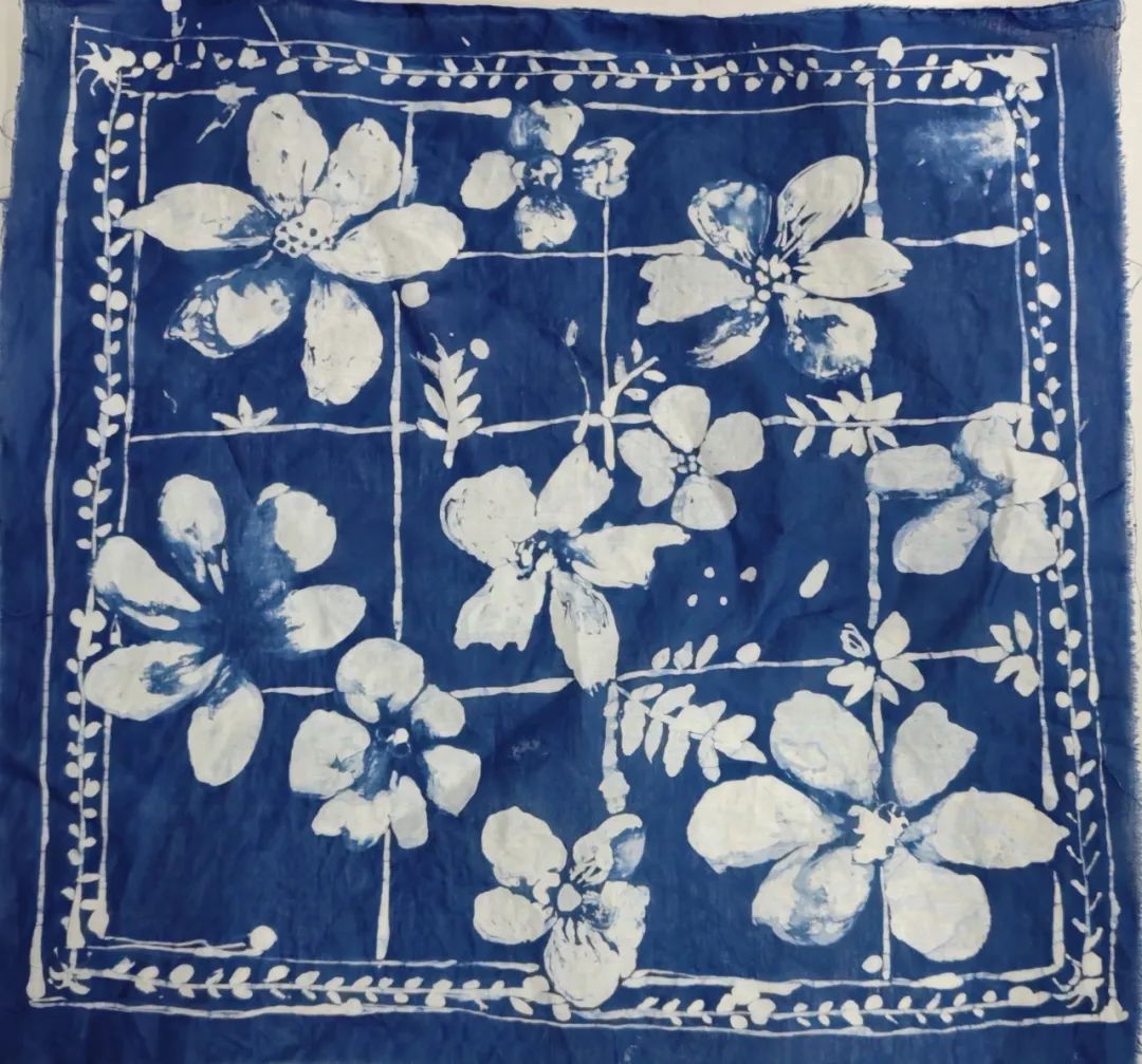 这一段段深入浅出、图文并茂的历史,仿佛带我走进了蓝白相间的幽深时空。在这里,没有专业壁垒,无论你是文科生、理科生,都能尽情挥洒灵感,使用靛蓝与草木染料间,亲手缔造出独一无二的纹样。当我捧着自己染就的作品,就更加感叹中国传统文化的神奇!
