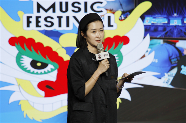 成龙影视传媒学院党总支副书记吴晶介绍“首届龙乐无界超级城市音乐节”的育人成果。刘恒 摄