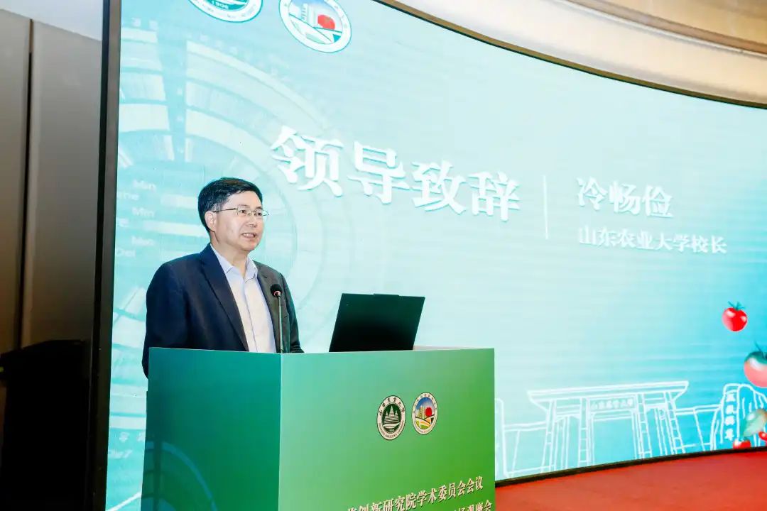 冷畅俭代表山东农业大学向莅临会议的各位专家、代表表示欢迎和感谢,并简要介绍了学校办学治校取得的成绩。他表示,番茄是全球第一大蔬菜作物,番茄产业已成为新时代乡村振兴和农民增收的支柱产业之一。泰山番茄创新研究院成立一年半以来,以番茄为模式开展国际最前沿科学研究,发现了植物再生因子并解析了植物控制免疫稳态的机理,为破解“作物遗传转化效率的基因型依赖性”和“高产与高抗性状存在负相关”这两大现代生物育种的世界性难题提供了技术路径。研究院对标国际一流品种,培育出可替代进口的“泰番”系列高端番茄新品种20余个,在东平等县市市场占有率已超过80%,为解决番茄高端品种“卡脖子”问题贡献了山农力量。4月10日,农业农村部部长韩俊到研究院调研番茄品种研发及推广情况,给予高度评价。冷畅俭指出,研究院正处在战略发展的快车道与关键跃升期。面对行业变革的时代机遇与创新突破的攻坚挑战,恳请各位院士专家为研究院的战略规划、技术攻关、平台建设把脉问诊、建言献策,为研究院发展注入智慧动能。