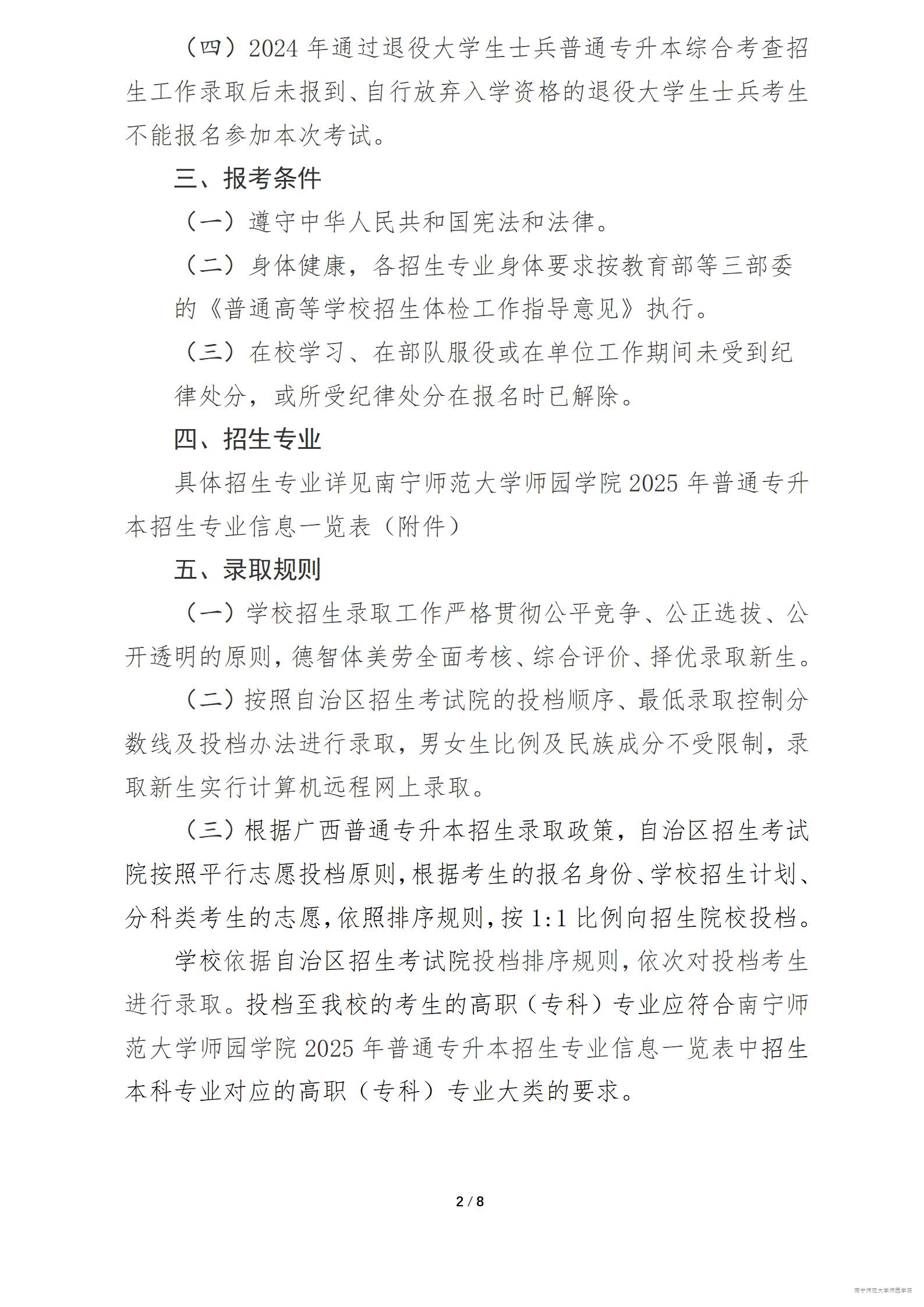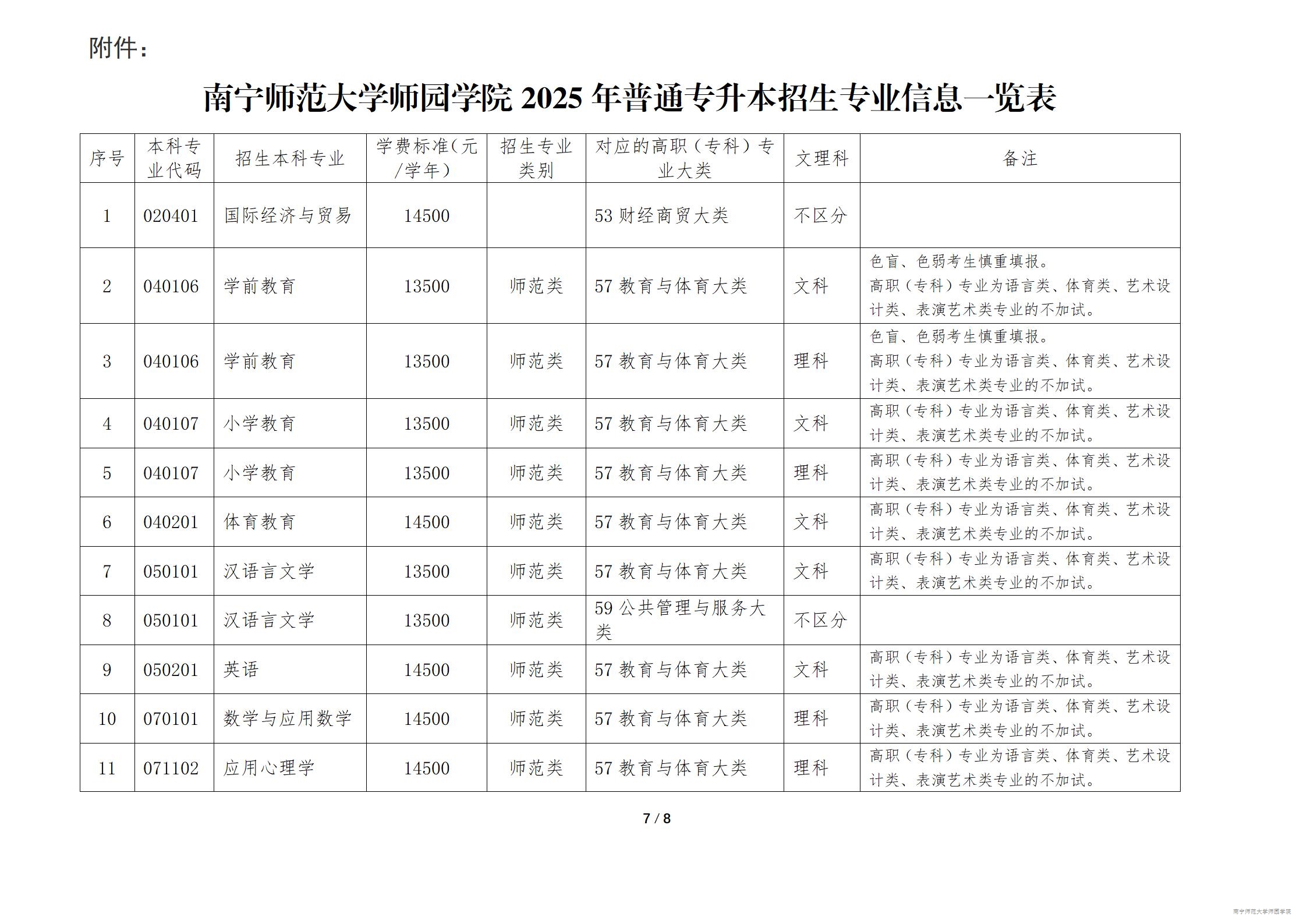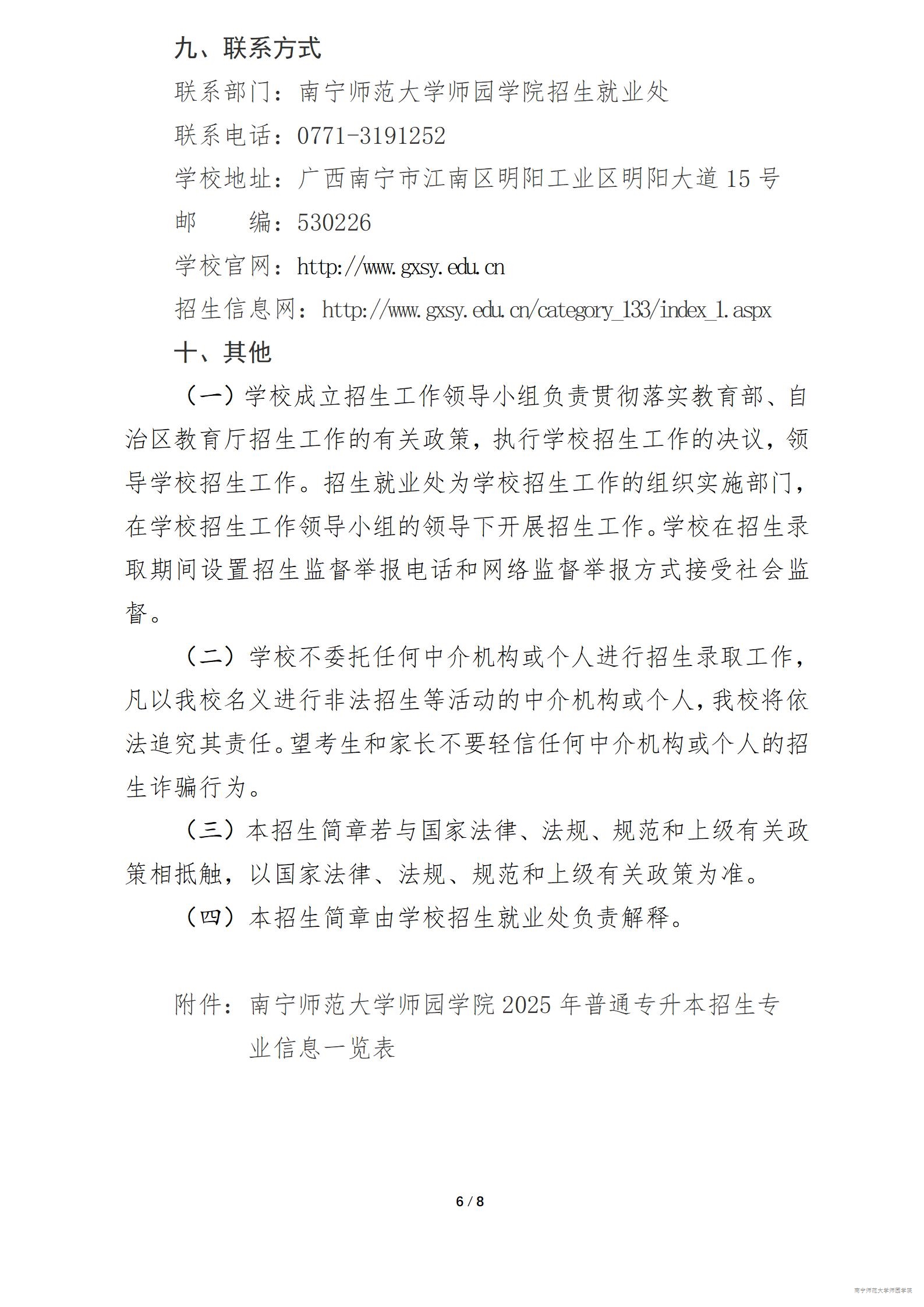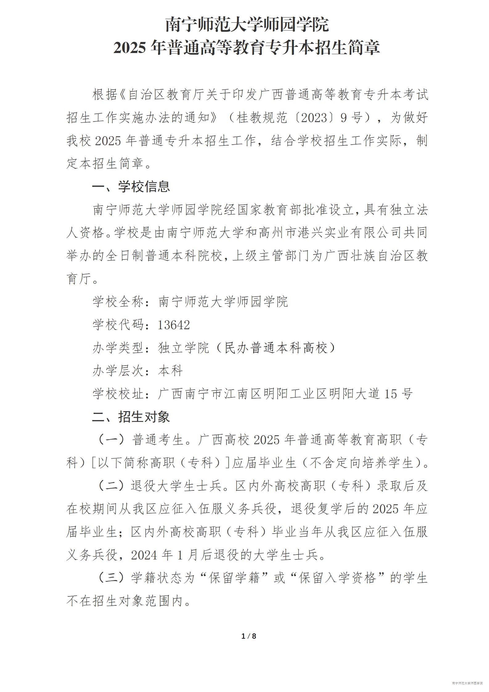 南宁师范大学师园学院2025年普通高等教育专升本招生简章