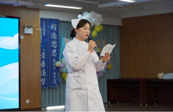 毕业生代表胡红霞发言,表达了对学院培养的感激之情,她表示,用实际行动践行护南丁格尔精神命,为医疗卫生事业贡献自己的力量。