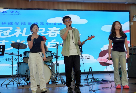 庄严的授帽仪式结束,舞台灯光渐次点亮,“黔程似锦”乐队用一首《鲜花》拉开了文艺汇演的帷幕,动人的旋律让毕业季更显绚烂芬芳;舞蹈《青花瓷》带领现场观众体验独属于东方的柔美;情景剧《压力ICU大逃亡》通过诙谐幽默的方式唤起大家对护理行业的深切共鸣;现场高潮迭起,掌声雷动,不仅展现了护理学院学子的多才多艺,更彰显了他们积极向上的精神风貌和对护理事业的无限热爱。晚会最后,杨发勇老师的说唱,李雪蓥老师的舞蹈,王力老师的歌曲《再见》饱含了对毕业生真挚的祝福,在欢声笑语中,护理学院的师生们共同度过了一个难忘的夜晚,2025届毕业生带着师长的殷切期望开启护理生涯新的篇章。