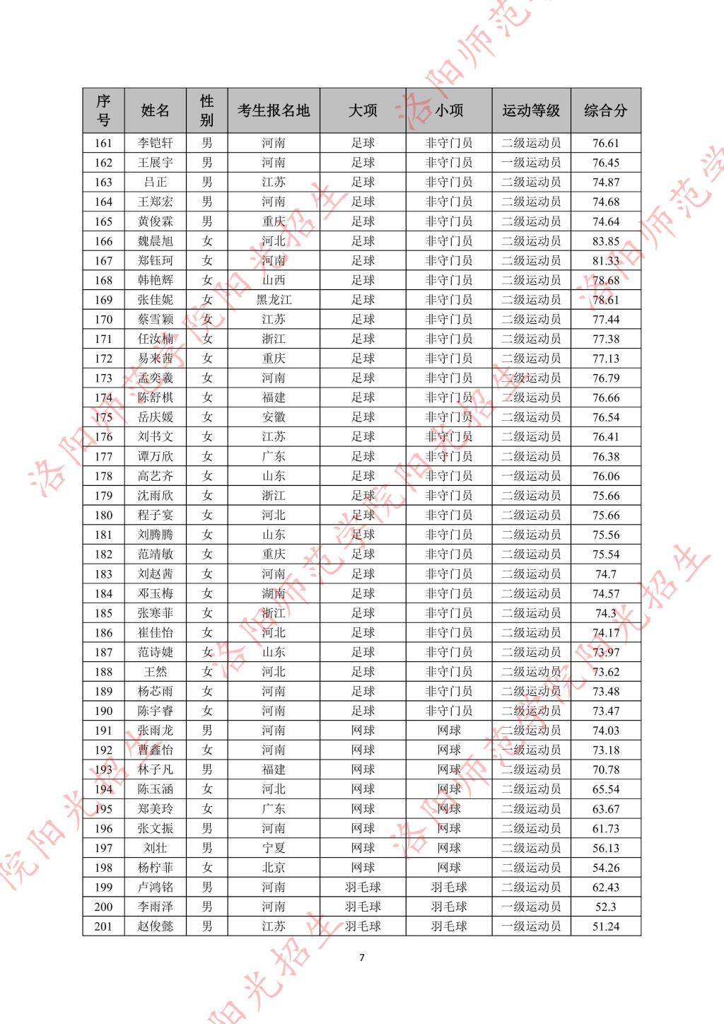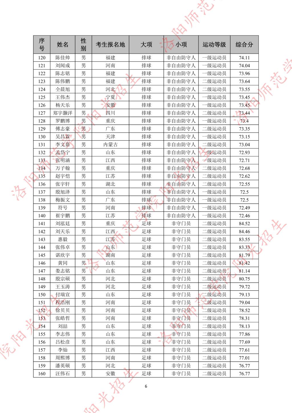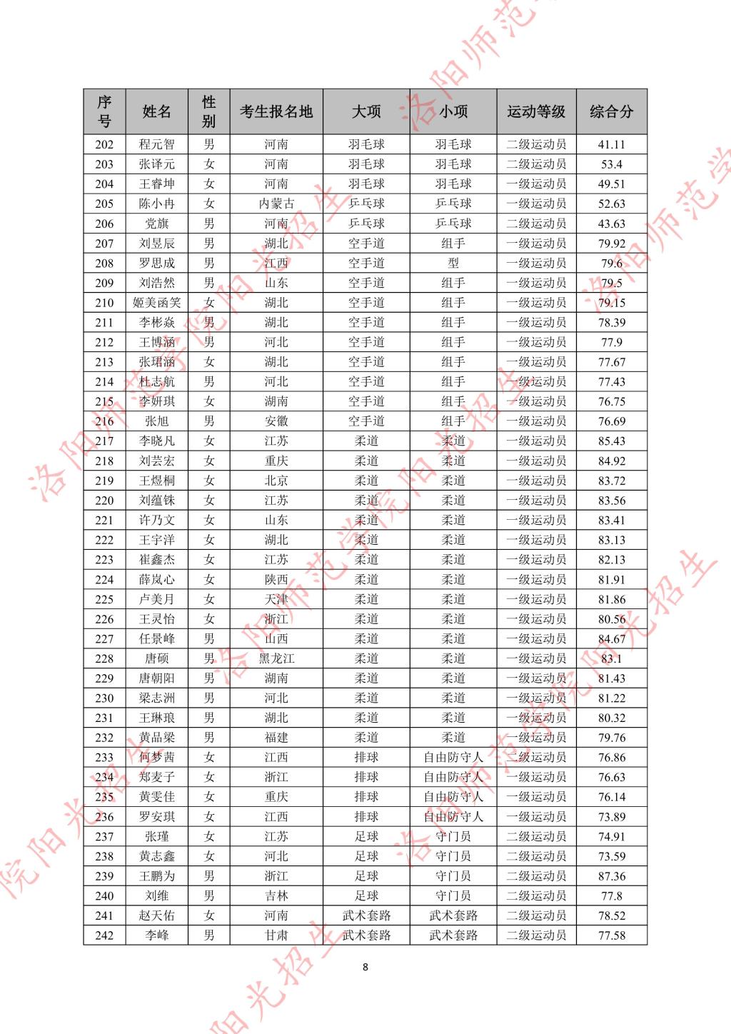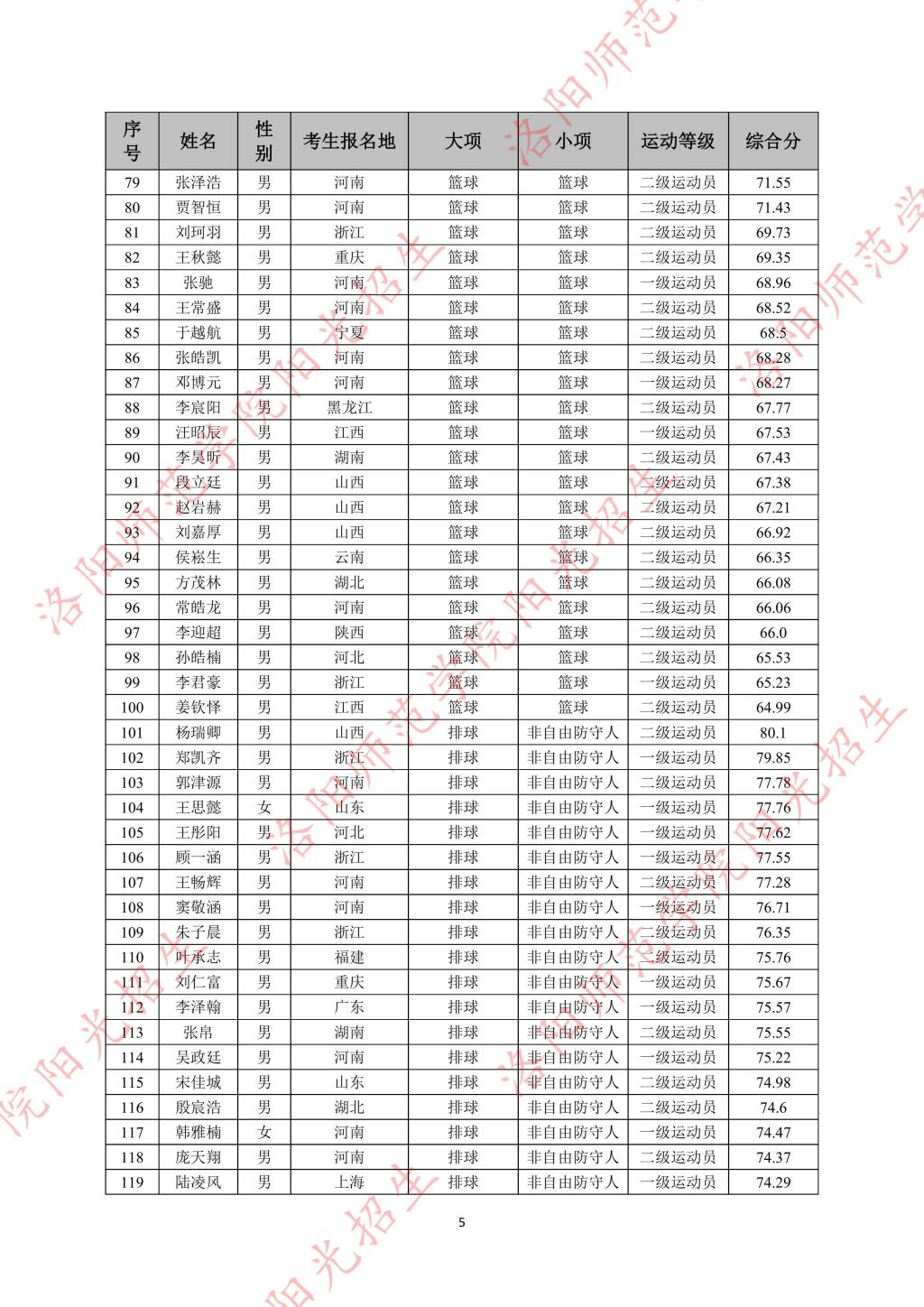 2025年洛阳师范学院运动训练、武术与民族传统体育专业拟录取考生名单公示