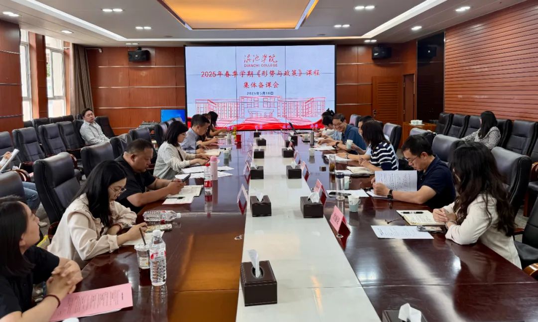 为促进学校思政课建设与党的创新理论武装同步推进、与中国式现代化建设伟大实践同频共振,聚焦当前国内外重大时事热点、党中央决策部署和最新政策精神,切实增强《形势与政策》课的实效性、针对性,2025年5月16日,滇池学院马克思主义学院在海埂校区崇志楼举行2025年春季学期《形势与政策》课集体备课会。