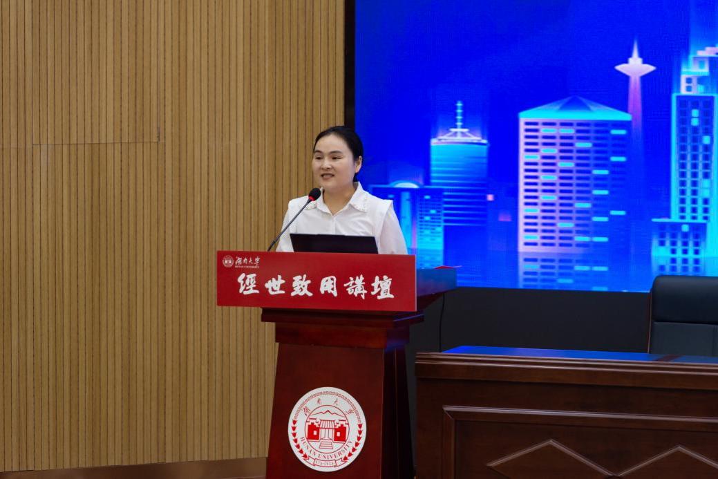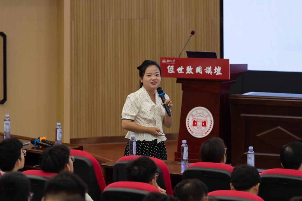 5月19日上午,湖南省嘉穗农业发展有限公司创始人朱霞、湖南建设投资集团六公司施工技术员张珍做客经世致用讲坛,在综合楼208报告厅作“扎根乡土,攀登云端——两位党代表的青春答卷”主题报告。