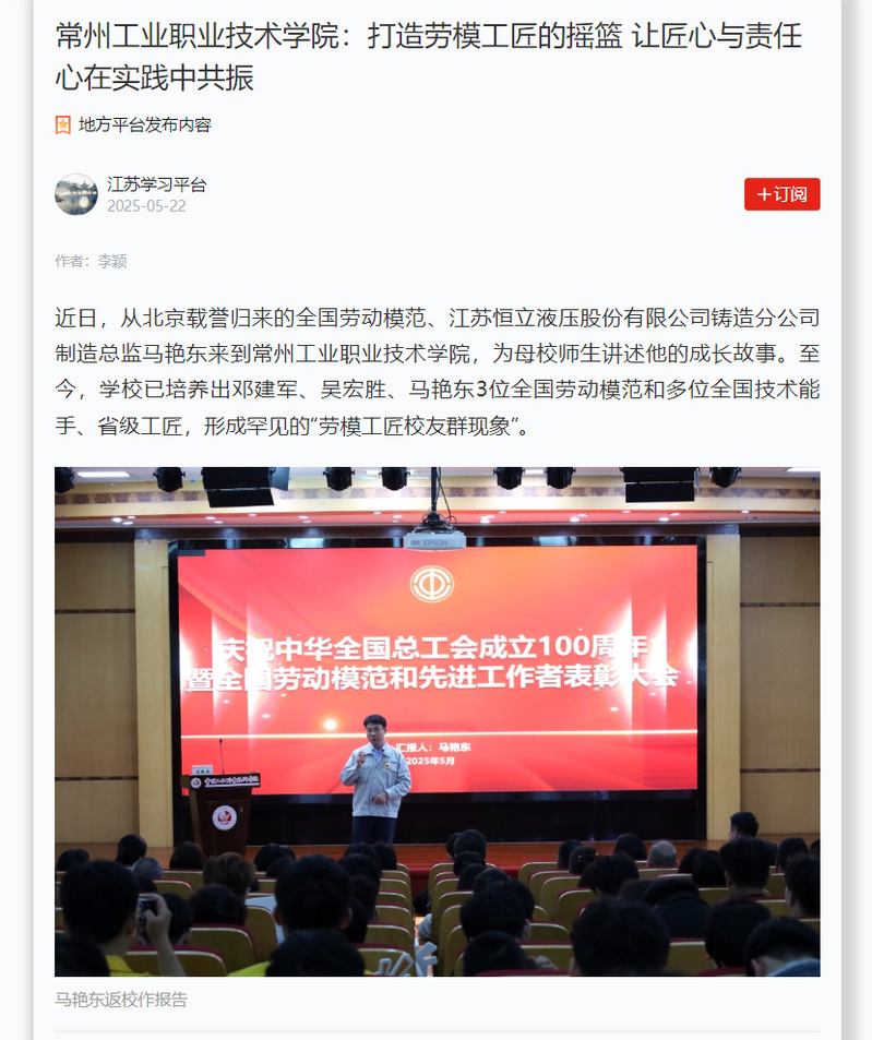 学习强国:常州工业职业技术学院:打造劳模工匠的摇篮 让匠心与责任心在实践中共振