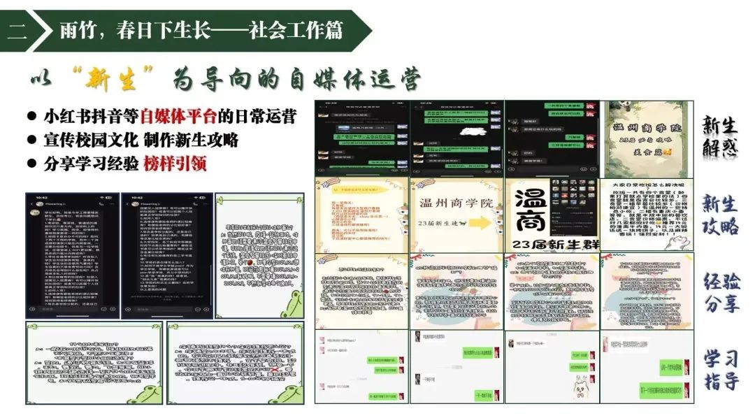 为了发挥更多榜样引领的作用,谭乔之自发在小红书、抖音等社交媒体上,创建以“国际学院新生”为导向的自媒体账号。在账号运营期间,单篇运营最高量达8000+。她积极在账号上分享自己的学习经验,简历模板和申请海外院校的心得,更为将近200名新生进行一对一答疑解惑。