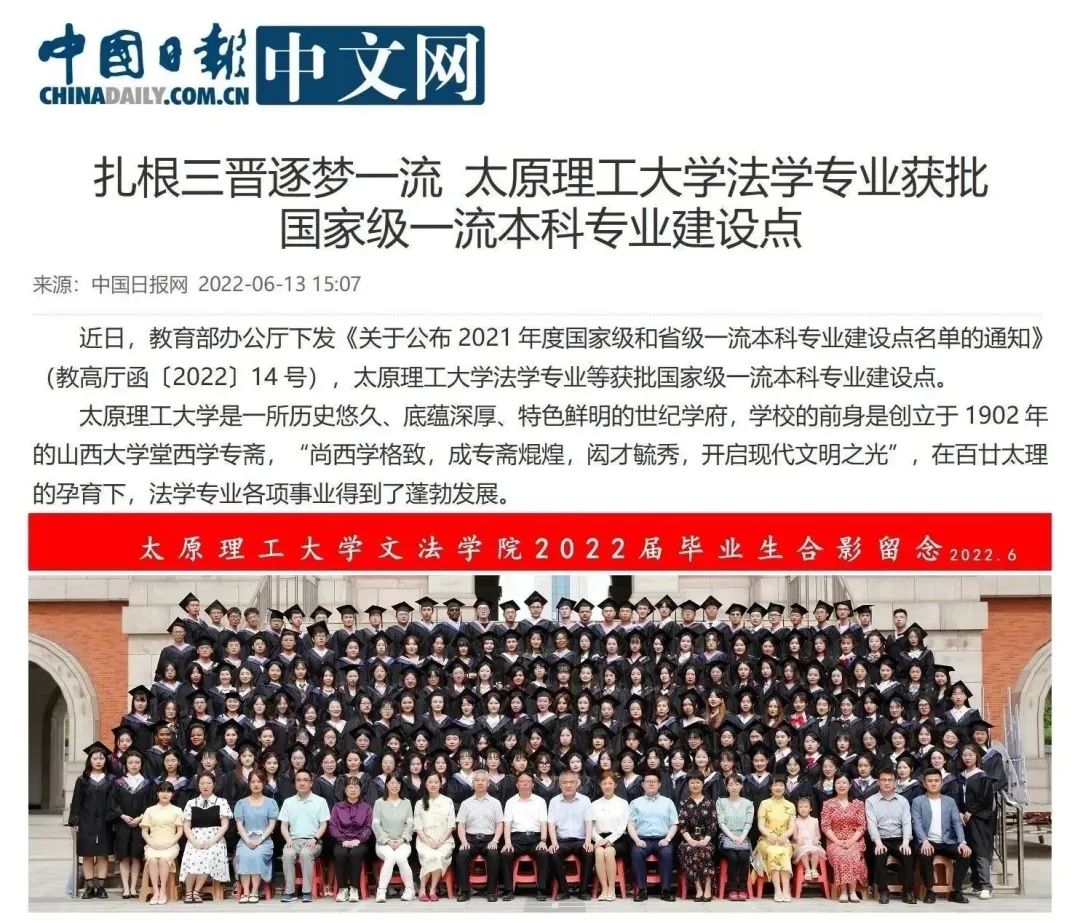 法学专业紧密结合太原理工大学综合性研究型高水平一流大学建设目标,聚焦山西全方位高质量发展过程中“煤基能源清洁高效开发与利用”等能源革命法律问题以及文物保护法律问题,开设“能源矿产法律制度”模块和“文物保护法律制度”模块,为国家经济社会发展、构建现代能源体系提供法律支持和法律服务。2021年法学专业获批“国家级一流本科专业建设点”。