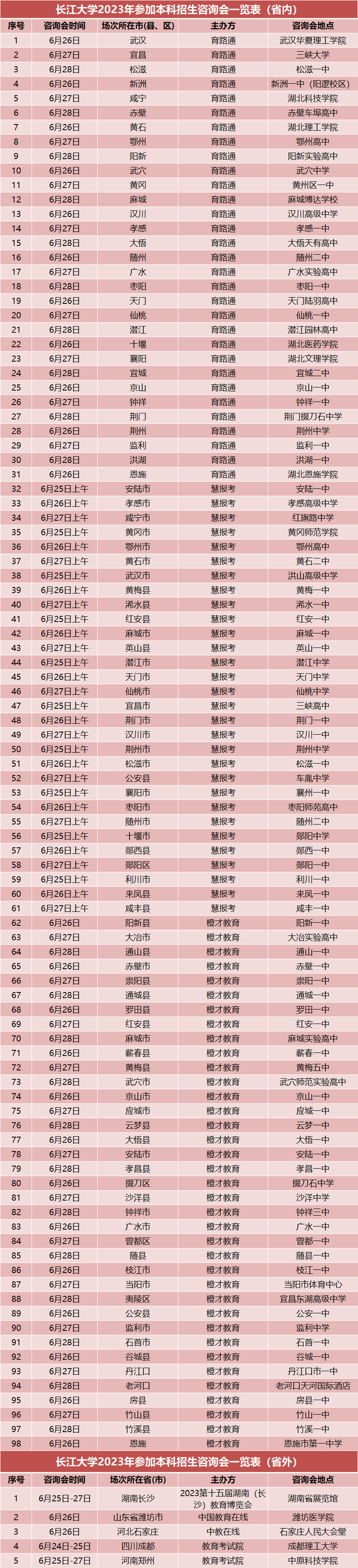 长江大学2023年线下招生宣讲+线上直播安排