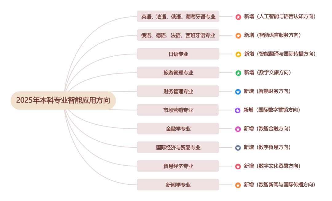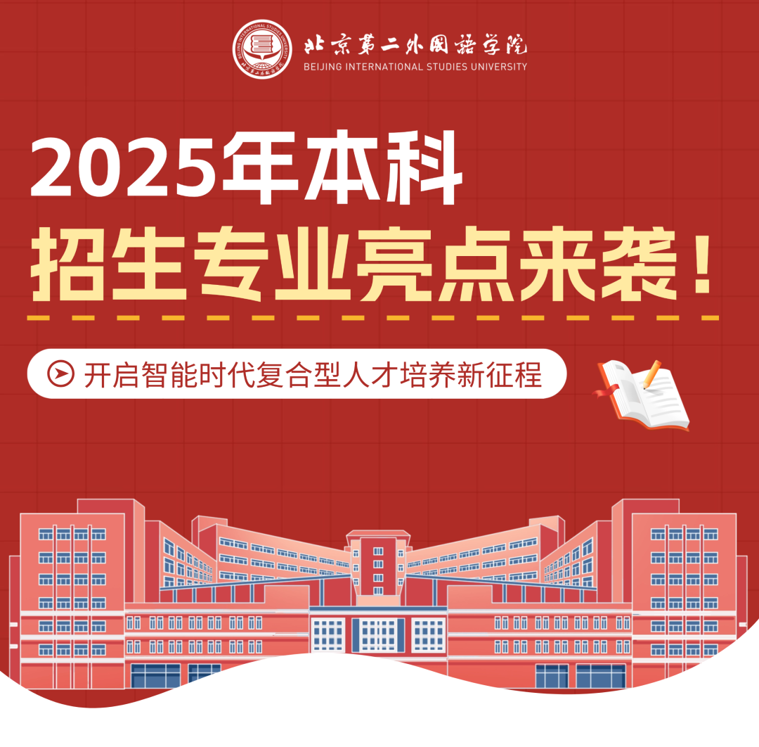 在人工智能浪潮席卷全球、新文科建设如火如荼的今天,北京第二外国语学院紧跟时代步伐,以前瞻布局回应智能革命浪潮,以创新突破重构复合培养范式,重磅推出2025年本科招生专业目录。此次专业优化,学校精准对接智能产业、数字经济等国家战略急需领域,全面推进“AI+”学科融合战略,精心打造智能应用专业矩阵,首创“有组织复合”体系,致力于培养兼具人文底蕴与数智素养的复合型中外人文交流人才。选择北二外,选择与时代同行,选择与世界接轨,开启未来无限可能!