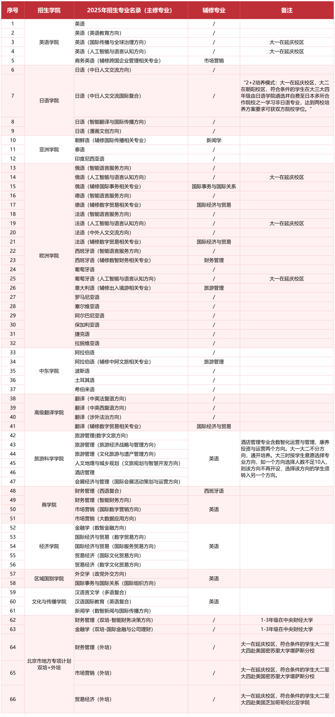 以时代之需重构育人体系,以未来视野重塑学科生态。北京第二外国语学院2025年本科招生专业亮点,是学校对国家战略需求的积极响应,是对未来教育发展趋势的深刻洞察,更是对同学们成长成才的殷切期望。选择北二外,你就选择了双专业通道,你将拥有国际化的学习平台,开启多元文化的学习之旅,为未来的职业发展赢得先机,积蓄力量。