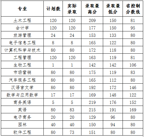 黄淮学院2017年专升本录取情况统计表