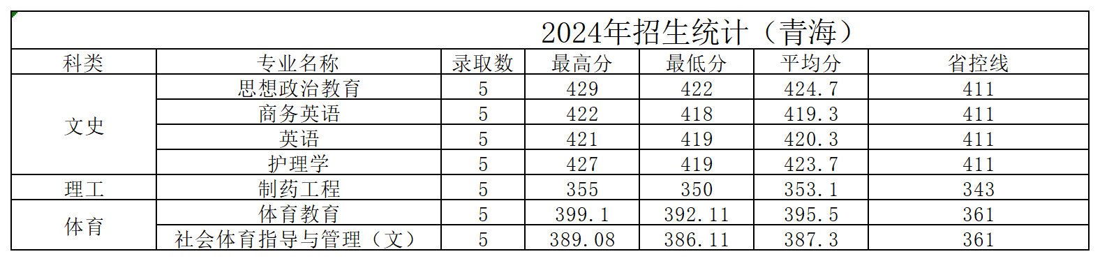 黄淮学院2024年青海省招生录取统计