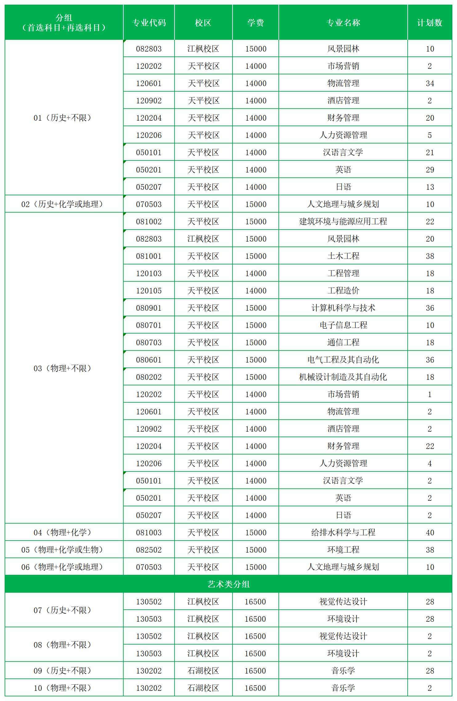 苏州科技大学天平学院2022年江苏省专业分组计划及收费一览表